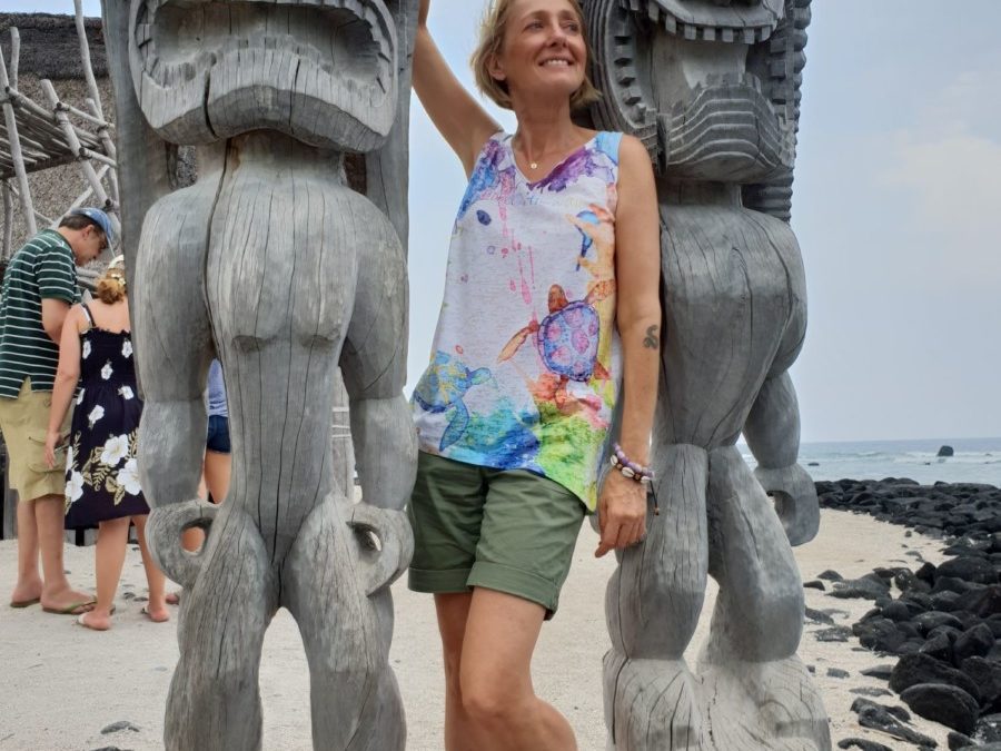 Czułam, że Hawaje to jest niezwykłe miejsce i miałam rację! Co chwilę czymś mnie zaskakiwały! Najwyższa góra na świecie Mauna Kea (ponad 10 000 m n.p.m.), czarne wulkaniczne plaże, tropikalna dżungla, wodospady, palmy kokosowe, tajemna obecność duchów, bogów i bogini w świętych miejscach (oraz poza nimi), papka z bulwy taro na śniadanie, plaża Waikiki, Honolulu, plantacje ananasów, Ocean Spokojny, delfiny, żółwie i koncerty na ukelele!!!