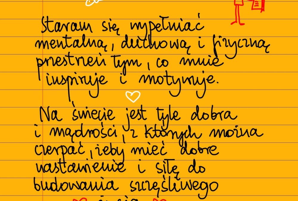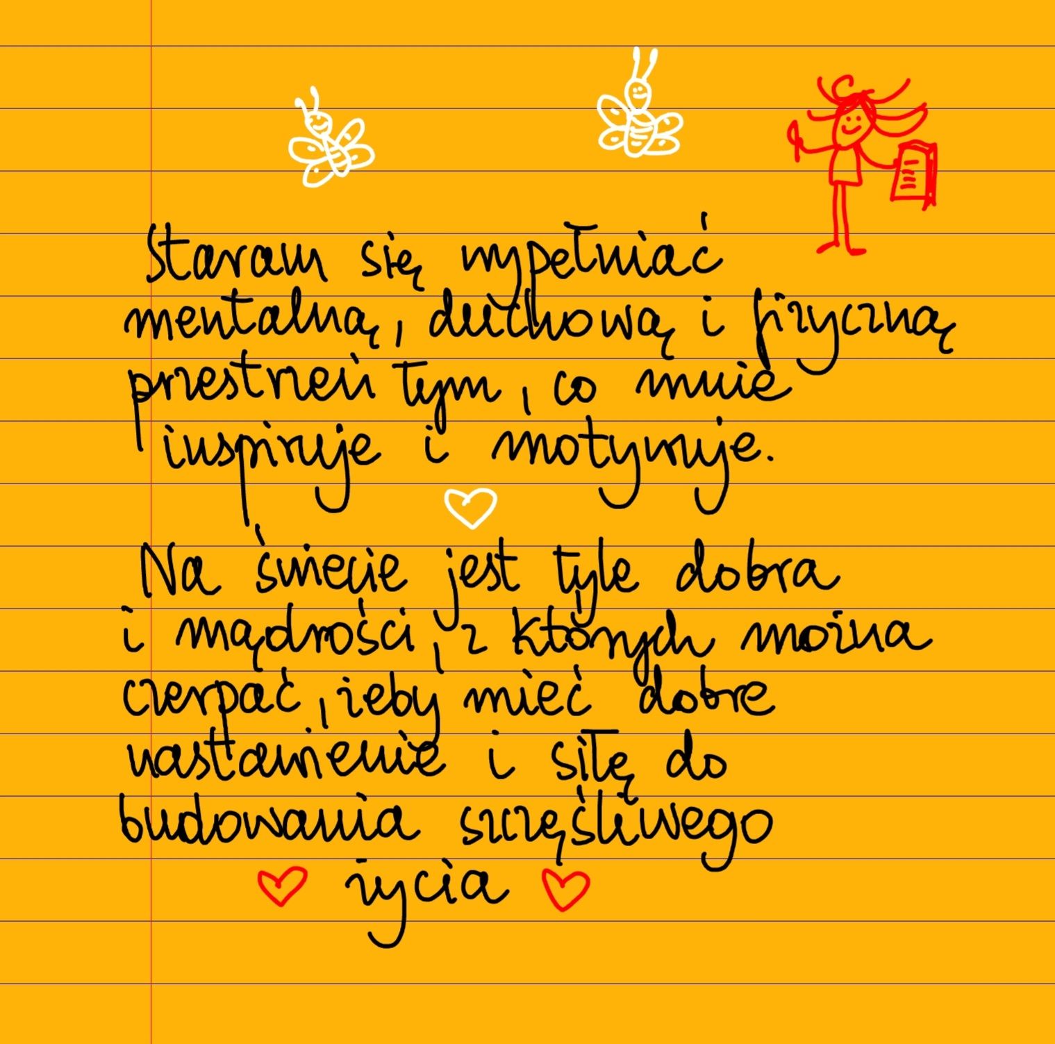 Staram się wypełniać fizyczną, mentalną i duchową przestrzeń tym, co mnie inspiruje i motywuje. Na świecie jest tyle dobra i mądrości, z których można czerpać, żeby tworzyć dobre nastawienie i siłę do budowania szczęśliwego życia ❤ #żółtakartka #beatapawlikowska