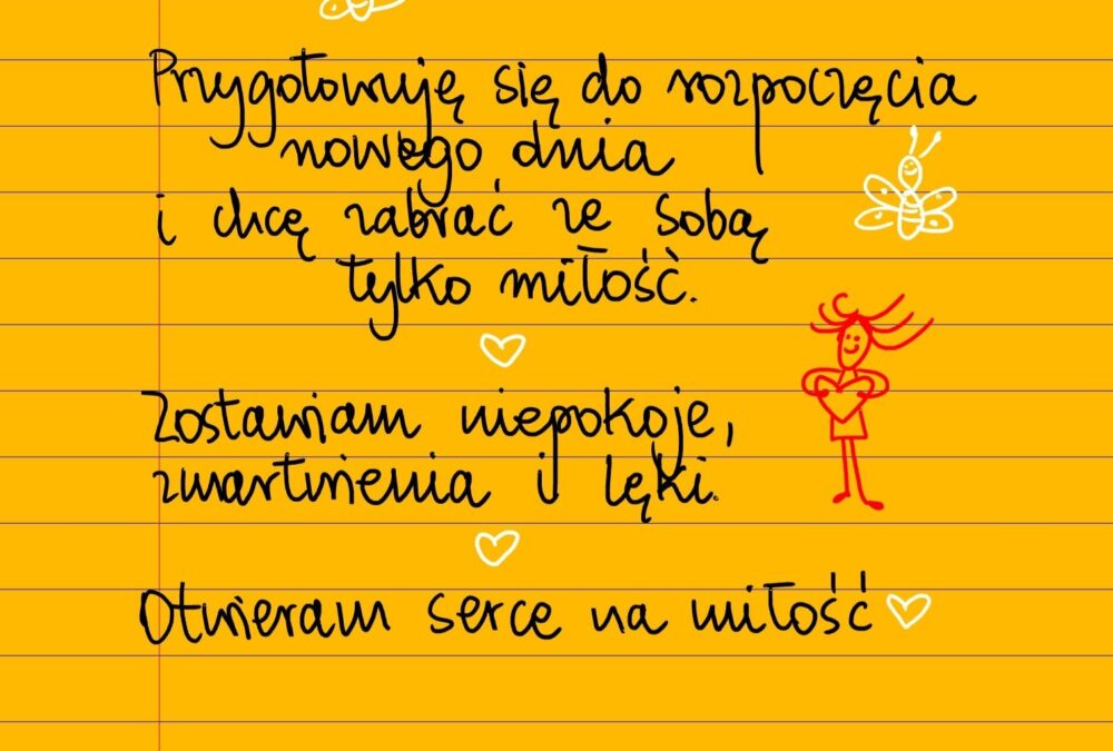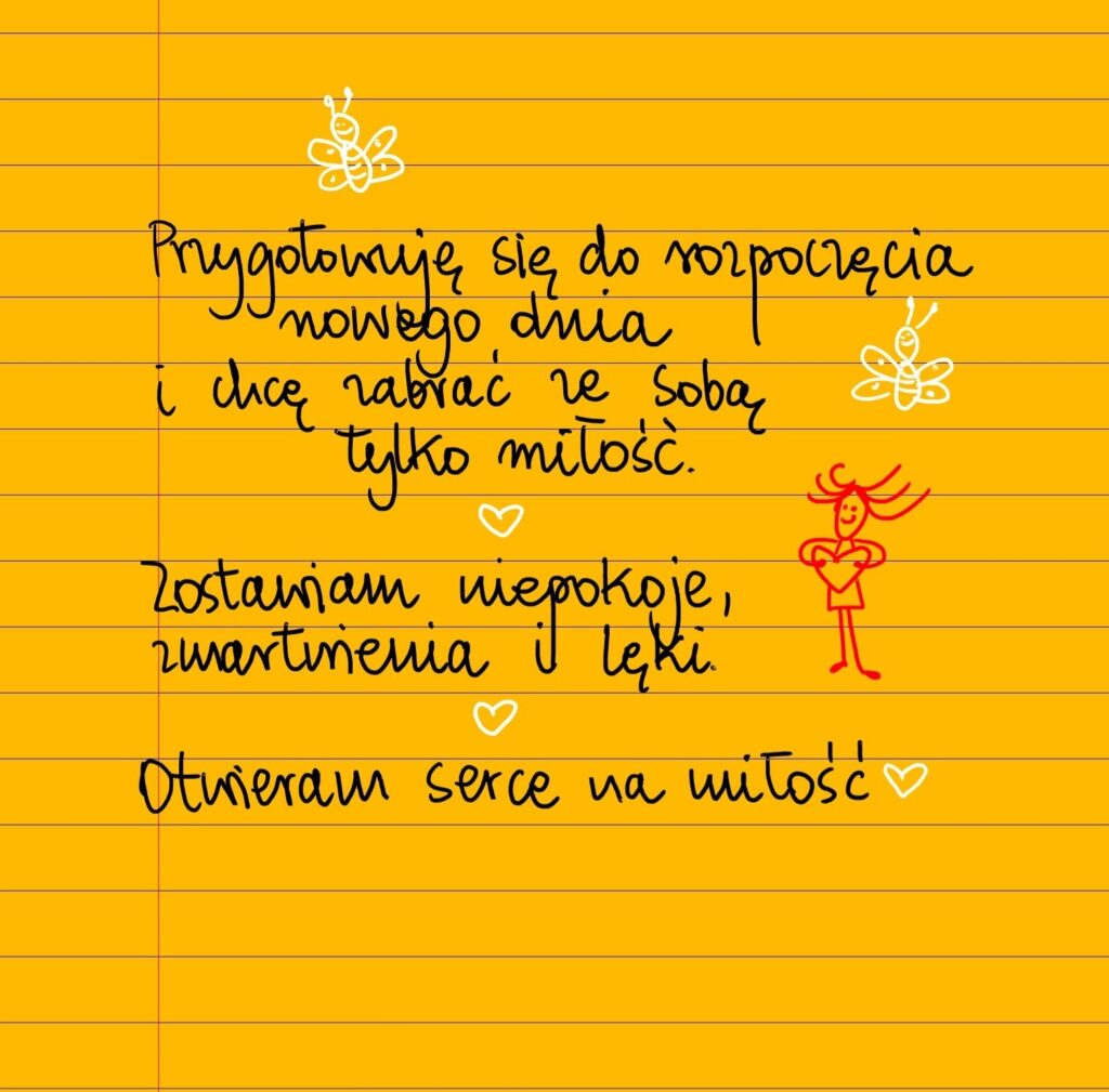 Żółte kartki Chcę zabrać tylko miłość środa, 21.08.2024 Przygotowuję się do rozpoczęcia nowego dnia i chcę zabrać ze sobą tylko miłość. Zostawiam zmartwienia, niepokoje, lęki. Otwieram serce na miłość ❤ Udostępnij na Facebooku