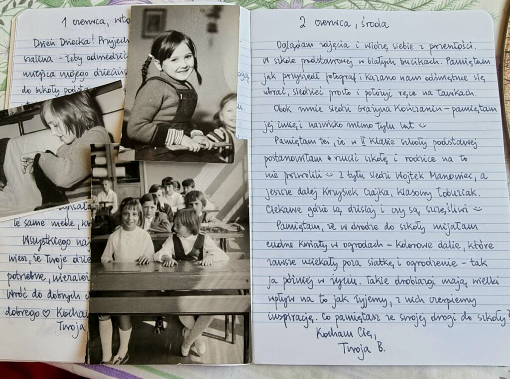 Oglądam zdjęcia i widzę siebie z przeszłości. W szkole podstawowej w białych bucikach. Pamiętam jak przyszedł fotograf i kazano nam odświętnie się ubrać, siedzieć prosto i położyć ręce na ławkach.