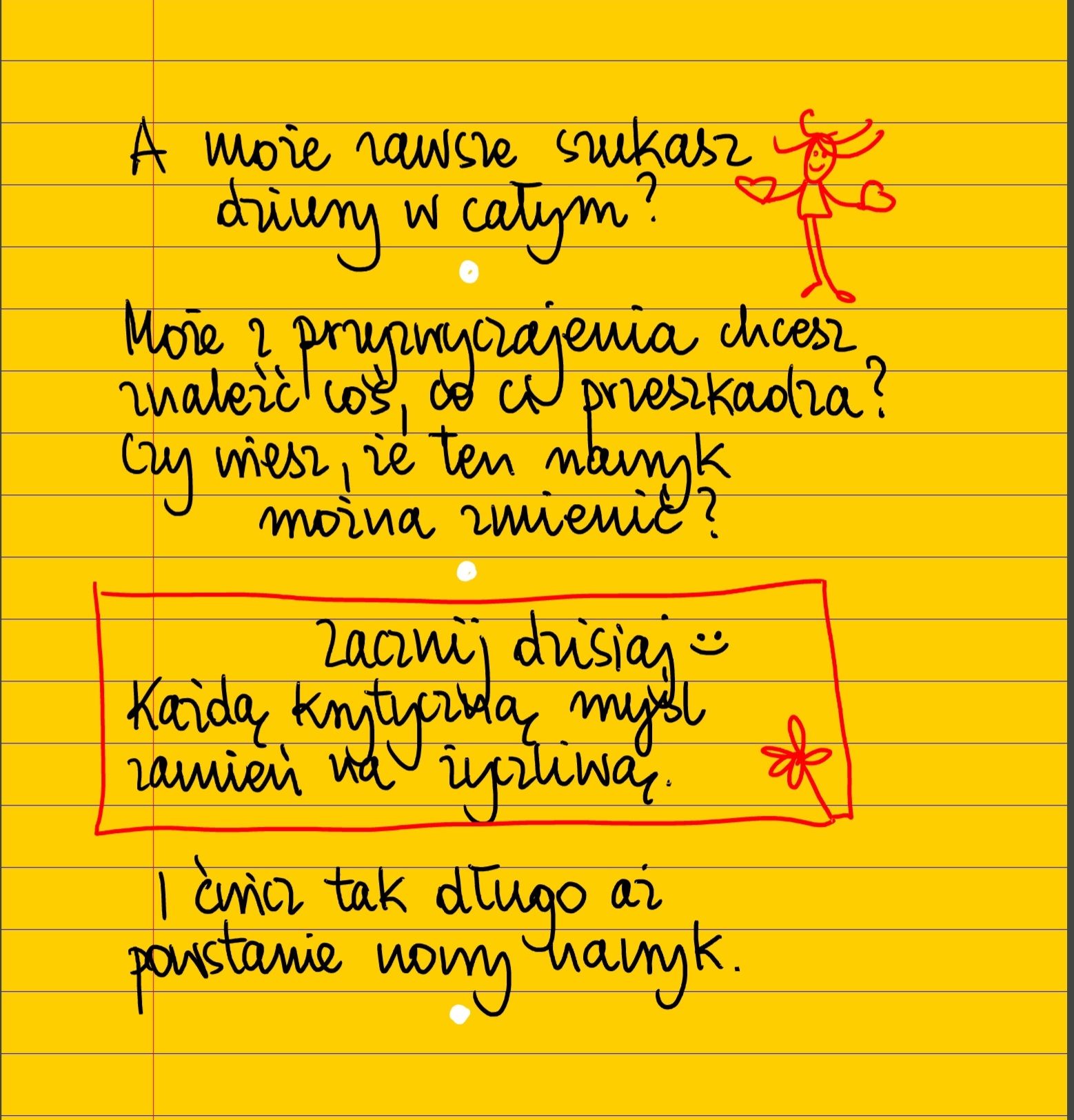 A może zawsze szukasz dziury w całym? Może z przyzwyczajenia chcesz znaleźć coś, co Ci przeszkadza? Czy wiesz, że ten nawyk można zmienić? Zacznij dzisiaj ❤ Każdą krytyczną myśl zamień na życzliwą ❤ I ćwicz tak długo, aż powstanie nowy nawyk ❤ #żółtakartka