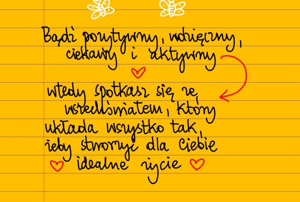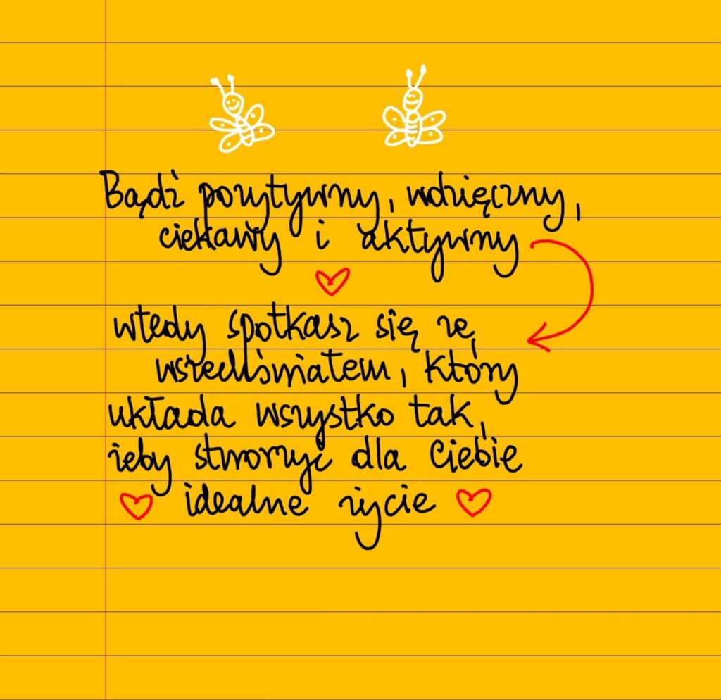 Żółte kartki Bądź pozytywny poniedziałek, 15.04.2024 Bądź pozytywny, wdzięczny, ciekawy i aktywny – wtedy spotkasz się ze wszechświatem, który układa wszystko tak, żeby stworzyć dla ciebie idealne życie ❤ #żółtakartka #beatapawlikowska Udostępnij na Facebooku