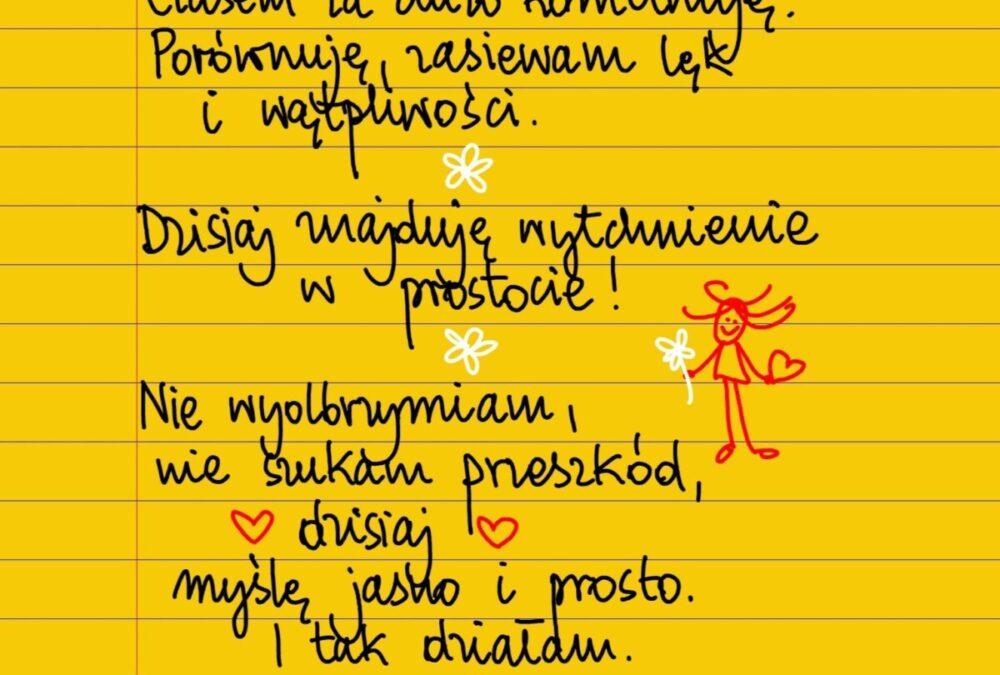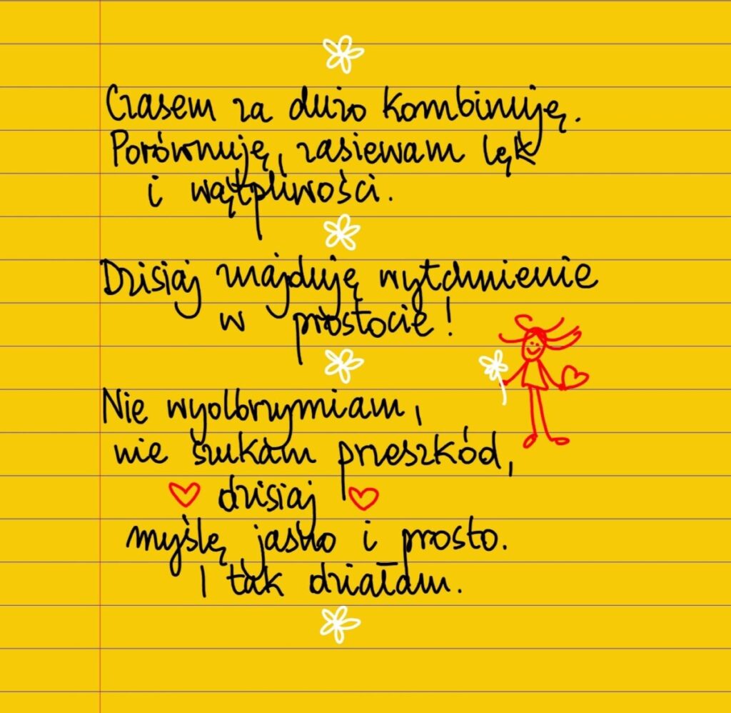 Czasem za dużo kombinuję. Porównuję, zasiewam w sobie lęk i wątpliwości. Dzisiaj znajduję wytchnienie w prostocie. Nie wyolbrzymiam, nie przesadzam, nie manipuluję faktami. Dzisiaj widzę ludzi i sprawy takimi, jakie naprawdę są. Myślę jasno i prosto. Działam. #żółtakartka