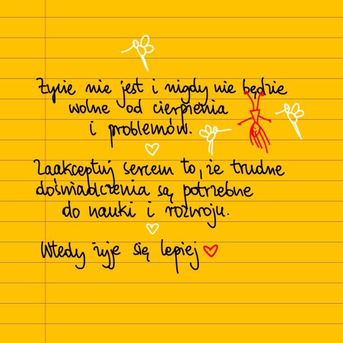 Życie nigdy nie jest i nigdy nie będzie wolne od cierpienia i problemów. Zaakceptuj sercem to, że trudne doświadczenia są potrzebne do nauki i rozwoju. Wtedy żyje się lepiej ❤ #żółtakartka #beatapawlikowska 💗