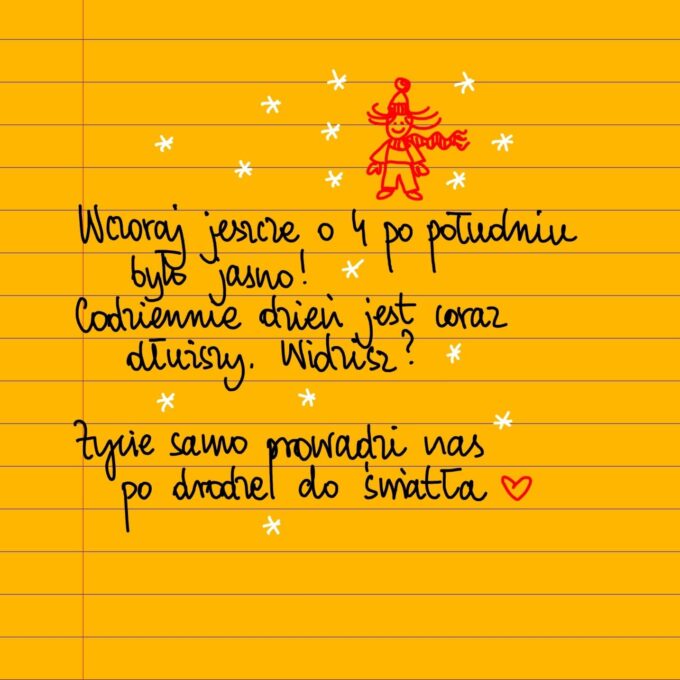 Wczoraj jeszcze o 4 po południu było jasno! Codziennie dzień jest coraz dłuższy. Widzisz? Życie samo prowadzi nas po drodze do światła ❤