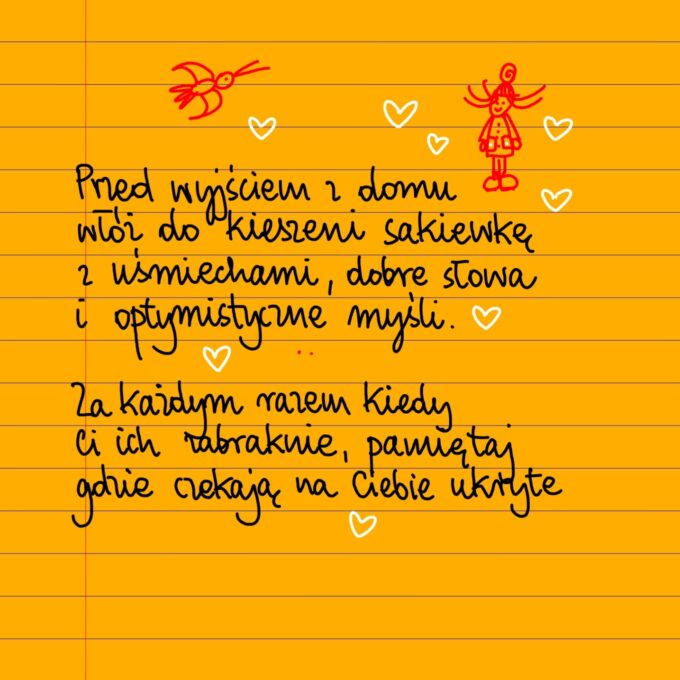 Przed wyjściem z domu włóż do kieszeni sakiewkę z uśmiechami, dobre słowa i optymistyczne myśli. Za każdym razem kiedy ci ich zabraknie, pamiętaj gdzie czekają na ciebie ukryte ❤