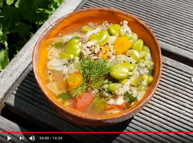 Wiosenna zupa z bobu z dodatkiem młodych warzyw, zielonego koperku i kaszy quinoa. Świeży zielony bób to bogactwo zdrowia!