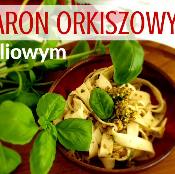 Przepis na sos bazyliowy z nasionami chia, sezamem, ziołami i olejem z czarnuszki, który podaję z pełnoziarnistym nakaronem orkiszowym.