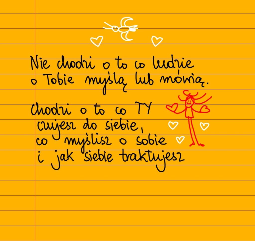 Nie chodzi o to co ludzie o tobie myślą lub mówią. Chodzi o to co TY czujesz do siebie, co myślisz o sobie i jak siebie traktujesz ❤ #żółtakartka