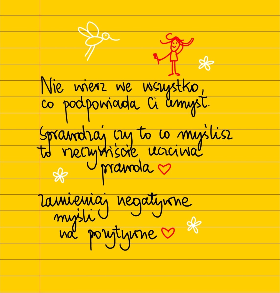 Żółte kartki Co podpowiada umysł piątek, 21.02.2025 Nie wierz we wszystko, co podpowiada Ci umysł. Sprawdzaj czy to co myślisz to rzeczywiście uczciwa prawda. Zamieniaj negatywne myśli na pozytywne ❤❤ #żółtakartka Udostępnij na Facebooku