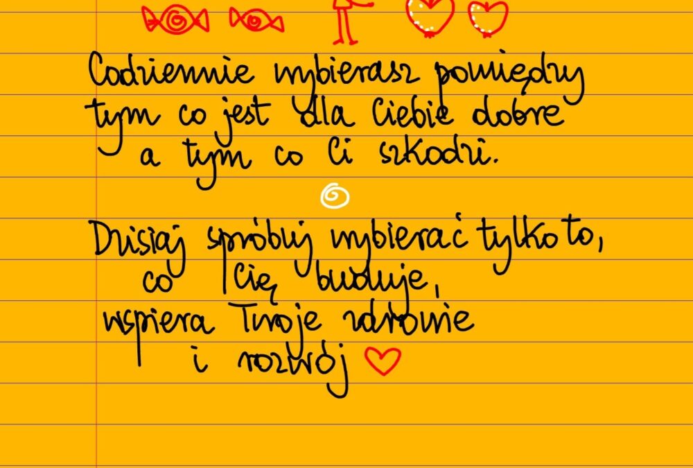 Żółte kartki Codziennie wybierasz czwartek, 18.04.2024 Codziennie wybierasz między tym co jest dla ciebie dobre, a tym co ci szkodzi, tworząc w ten sposób swoje jutro i przyszłość. Dzisiaj spróbuj wybierać tylko to, co cię buduje, wspiera twoje zdrowie i rozwój ❤ Udostępnij na Facebooku