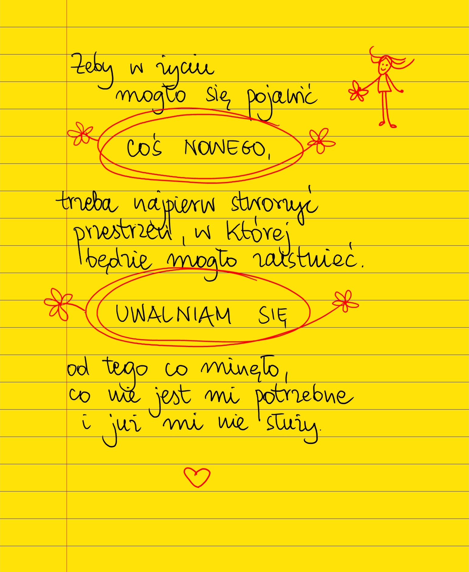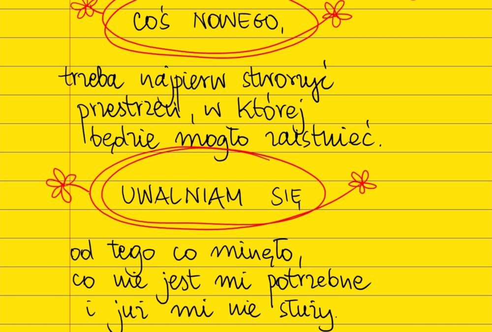 Żółte kartki Coś nowego czwartek, 09.11.2023 Żeby w życiu mogło pojawić się COŚ NOWEGO, trzeba najpierw stworzyć przestrzeń, w której będzie mogło zaistnieć. UWALNIAM SIĘ od tego, co minęło, co nie jest mi potrzebne i już mi nie służy. #żółtakartka Udostępnij na Facebooku