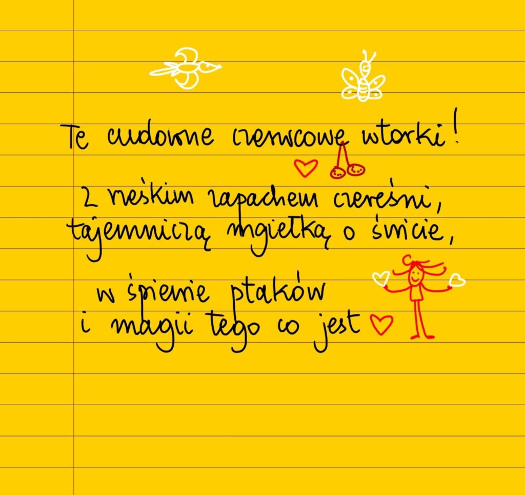 Żółte kartki Cudowne czerwcowe wtorki wtorek, 11.06.2024 Te cudowne czerwcowe wtorki! Z rześkim zapachem czereśni, tajemniczą mgiełką o świcie, w śpiewie ptaków i magii tego, co jest ❤ Udostępnij na Facebooku