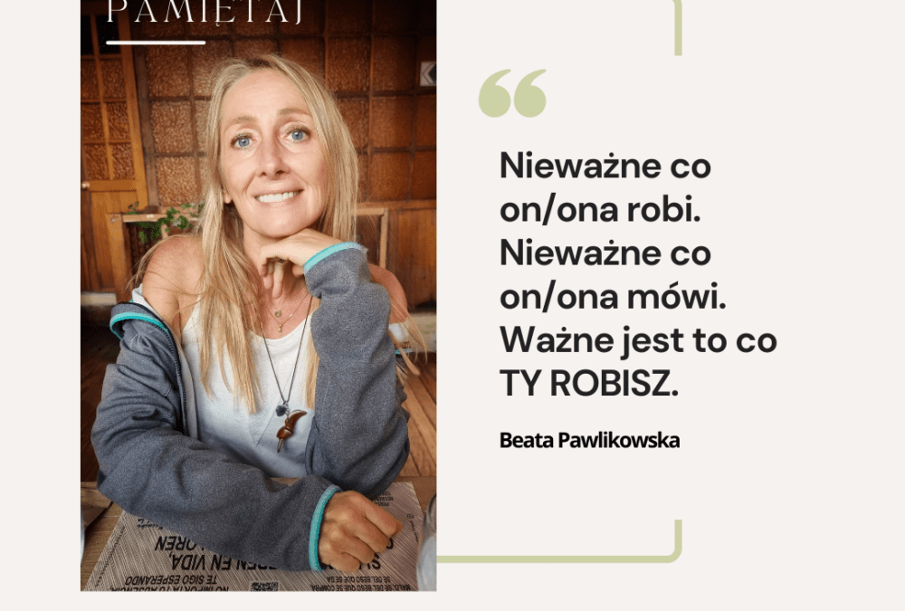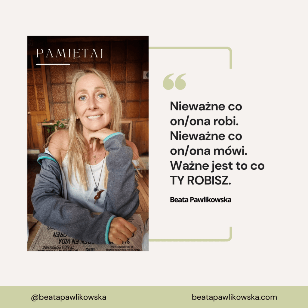 Nieważne co on/ona robi. Nieważne co on/ona mówi. Ważne jest to co TY ROBISZ. Co robisz ze swoim życiem, swoim czasem, swoimi marzeniami. Na tym się skoncentruj.