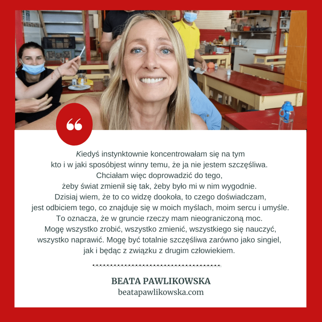 Kiedyś instynktownie koncentrowałam się na tym kto i w jaki sposób jest winny temu, że ja nie jestem szczęśliwa. Chciałam więc doprowadzić do tego, żeby świat zmienił się tak, żeby było mi w nim wygodnie.