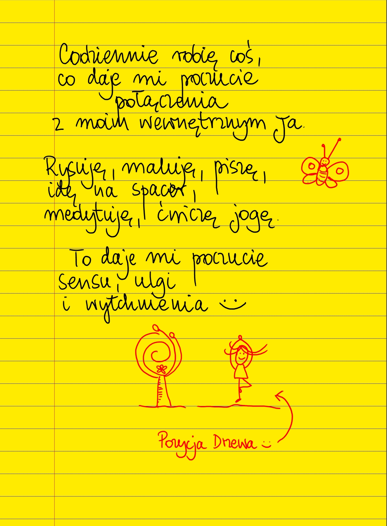 Żółte kartki Czas ze swoim Ja poniedziałek, 06.11.2023 Codziennie robię coś, co daje mi poczucie połączenia z moim wewnętrznym Ja. Rysuję, maluję, piszę, idę na spacer, medytuję, ćwiczę jogę. To daje mi poczucie sensu, ulgi i wytchnienia ❤ #żółtakartka Udostępnij na Facebooku