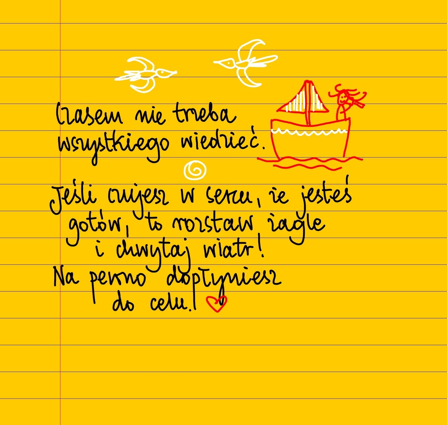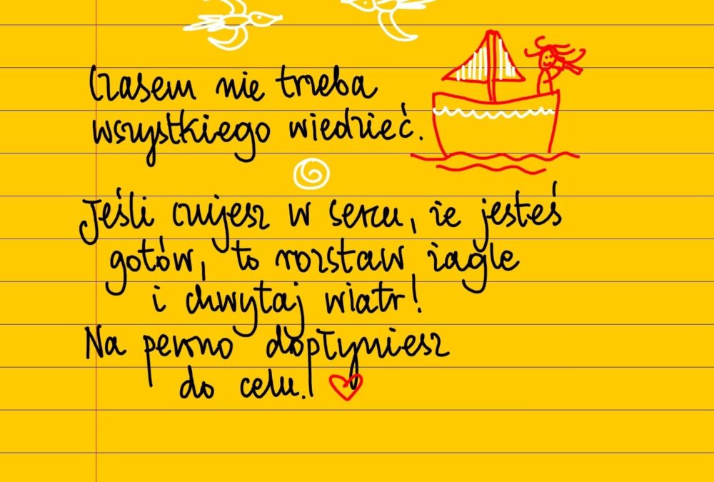 Czasem nie trzeba wszystkiego wiedzieć. Jeżeli czujesz w sercu, że jesteś gotowy, rozstaw żagle i chwytaj dobry wiatr. Na pewno dopłyniesz do celu ❤