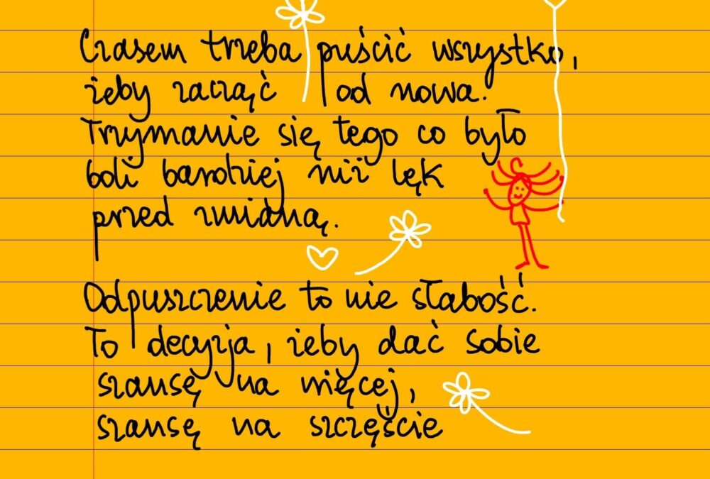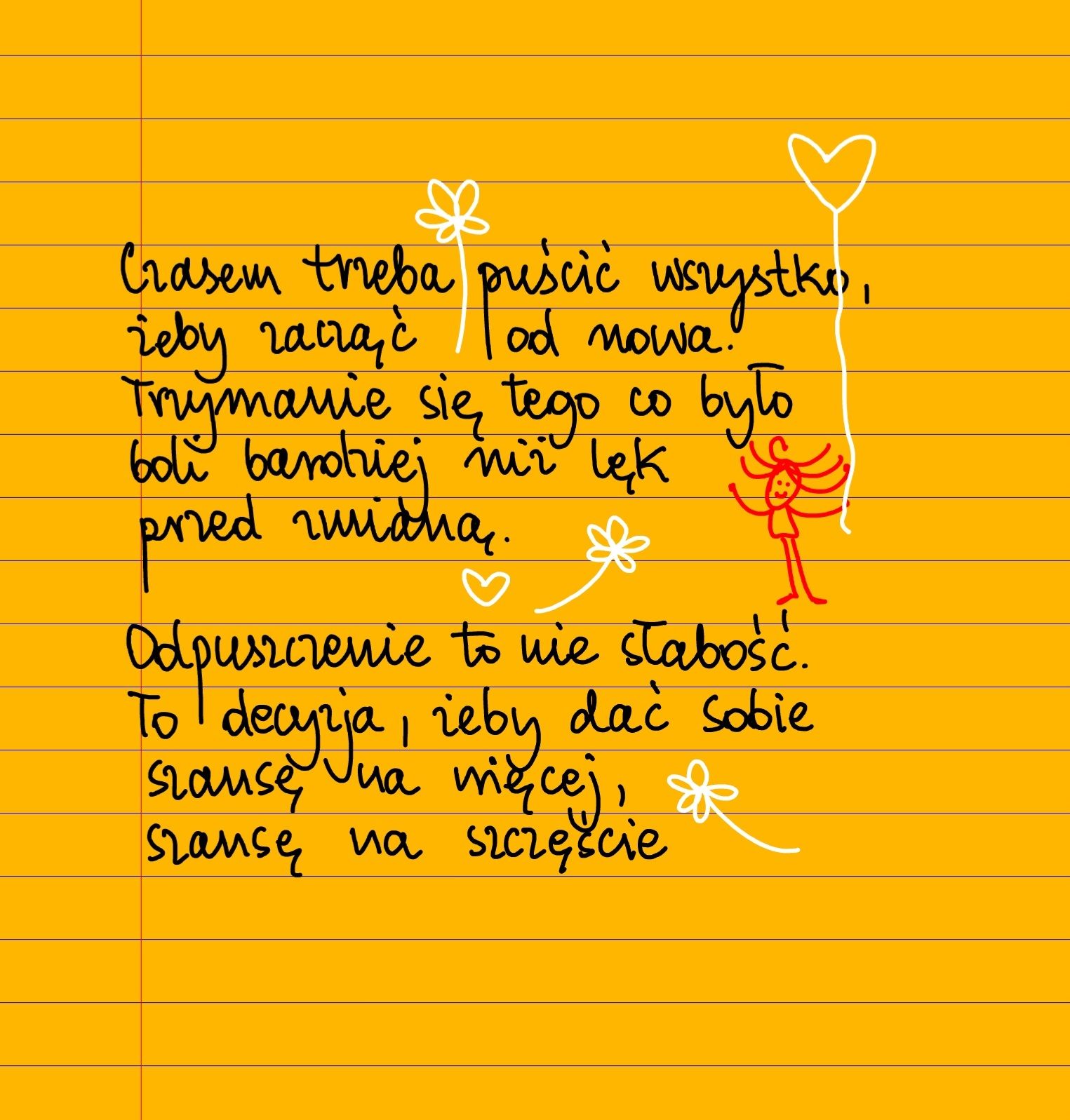 Czasem trzeba puścić wszystko, żeby zacząć od nowa. Bez tłumaczenia i bez oglądania się za siebie. Trzymanie się tego co było boli bardziej niż strach przed nieznanym. Odpuszczenie to nie słabość. To decyzja, by dać sobie szansę na więcej, szansę na szczęście ❤