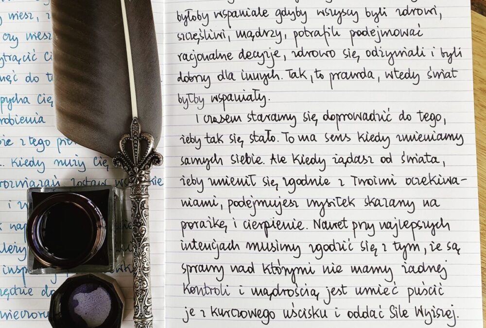 I czasem staramy się doprowadzić do tego, żeby tak się stało. To ma sens kiedy zmieniamy samych siebie. Ale kiedy żądasz od świata, żeby zmienił się zgodnie z Twoimi oczekiwaniami, podejmujesz wysiłek skazany na porażkę i cierpienie. Nawet przy najlepszych intencjach musimy zgodzić się z tym, że są sprawy, nad którymi nie mamy żadnej kontroli i mądrością jest umieć puścić je z kurczowego uścisku i oddać Sile Wyższej.
