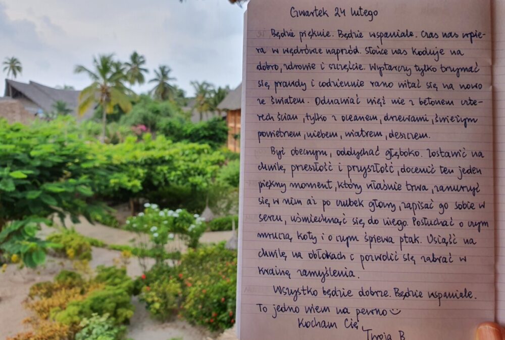 Będzie pięknie. Będzie wspaniale. Czas nas wspiera w wędrówce naprzód. Słońce nas koduje na dobro, zdrowie i szczęście. Wystarczy tylko trzymać się prawdy i codziennie rano witać się na nowo ze światem. Odnawiać więź nie z betonem czterech ścian, tylko z oceanem, drzewami, świeżym powietrzem, niebem, wiatrem, deszczem.