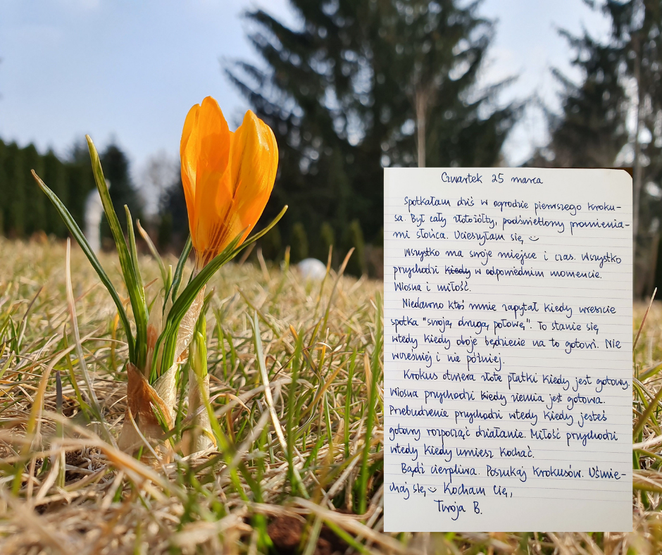 Bądź cierpliwa. Poszukaj krokusów. Uśmiechaj się 😊 Kocham Cię,