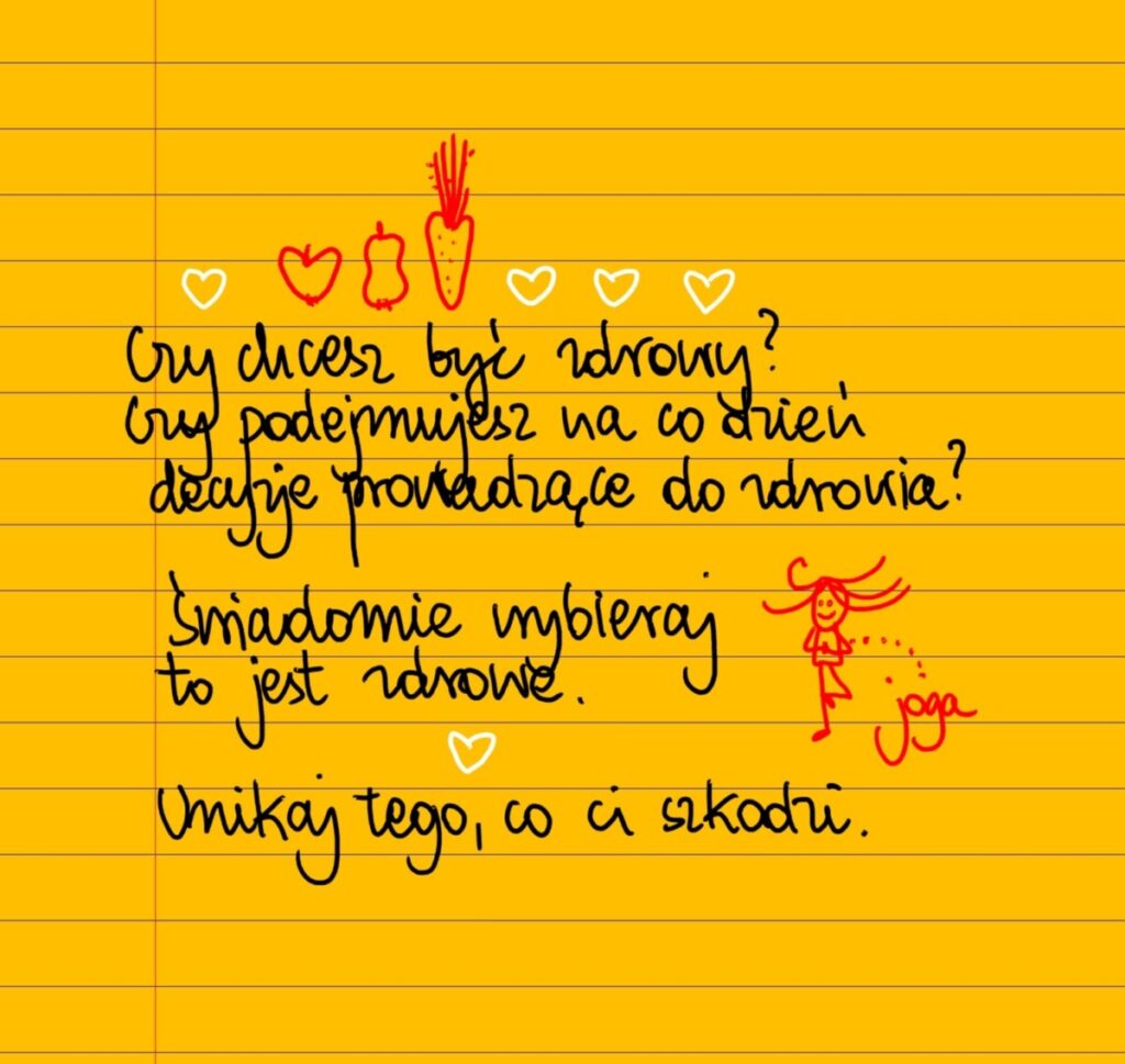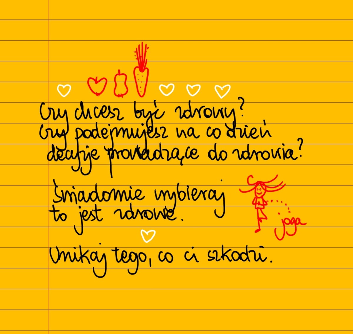Żółte kartki Czy chcesz być zdrowy? środa, 01.03.2023 Czy chcesz być zdrowy? Czy podejmujesz na co dzień decyzje prowadzące do zdrowia? Świadomie wybieraj to co jest zdrowe. Unikaj tego co ci szkodzi. #żółtakartka Udostępnij na Facebooku