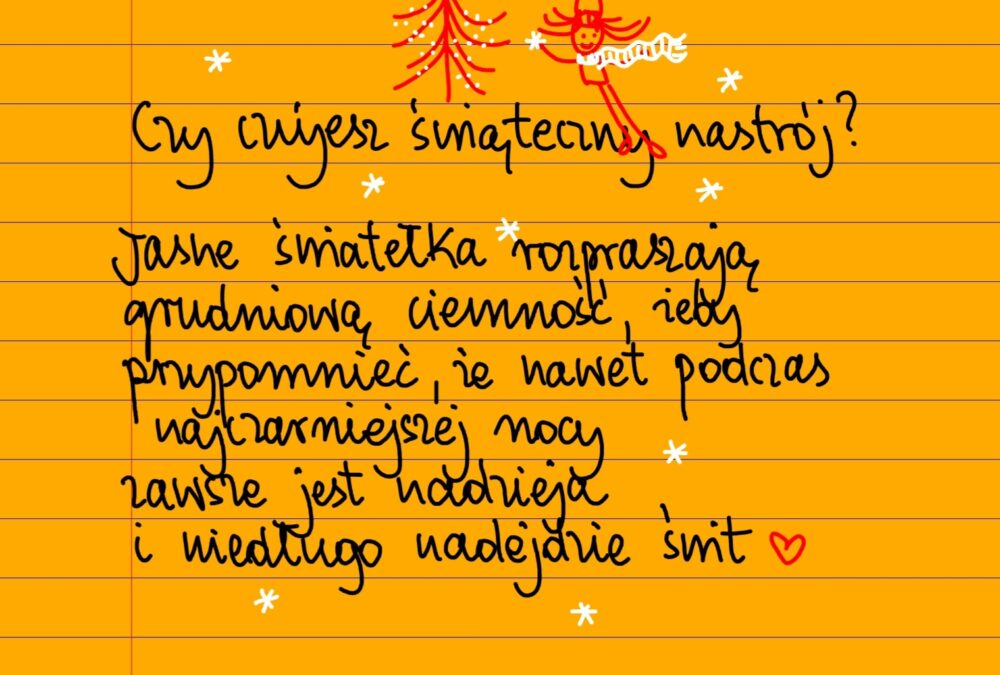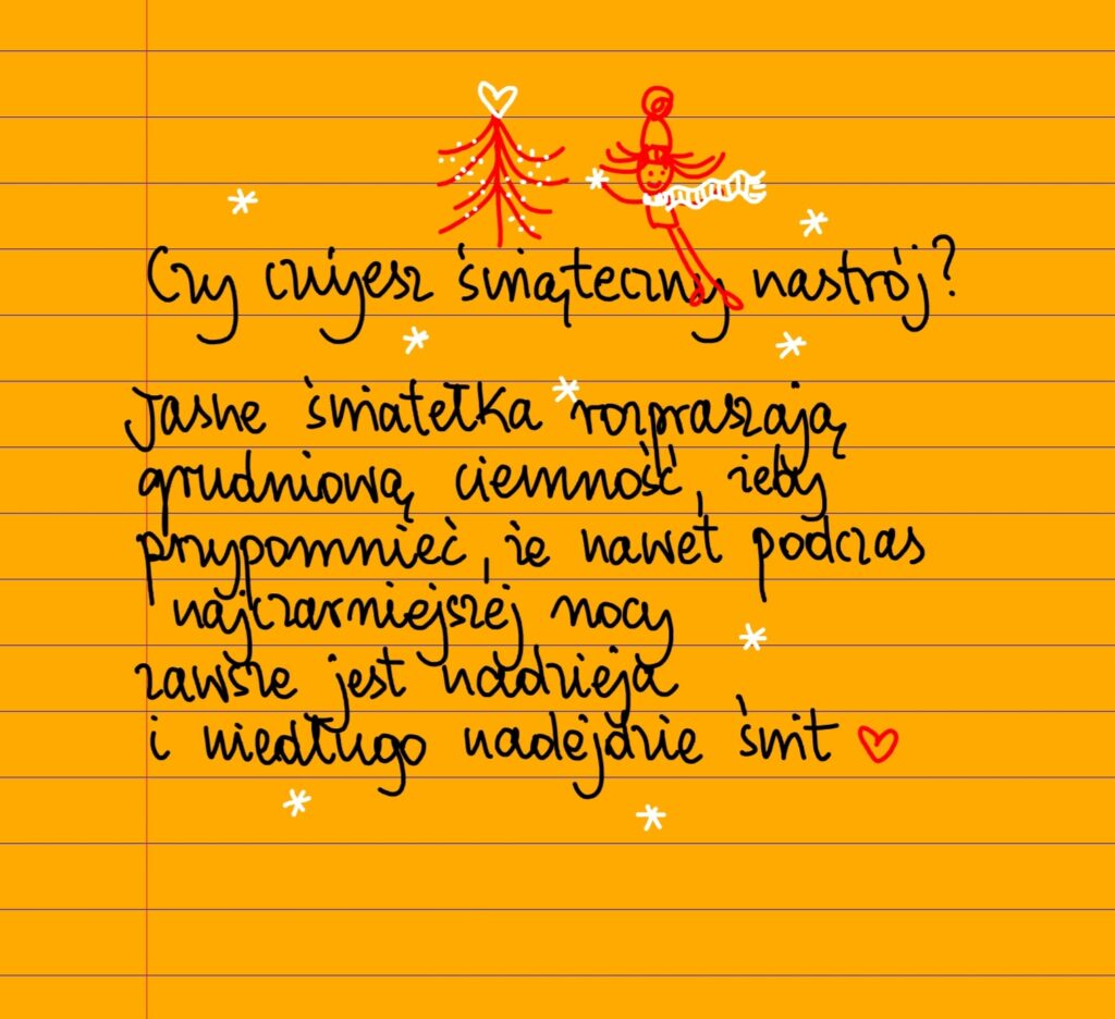 Bez kategorii Czy czujesz świąteczny nastrój? poniedziałek, 23.12.2024 Czy czujesz świąteczny nastrój? Jasne światełka rozpraszają grudniową ciemność, żeby przypomnieć, że nawet podczas najczarniejszej nocy zawsze jest nadzieja i niedługo znów nadejdzie świt ❤ Udostępnij na Facebooku