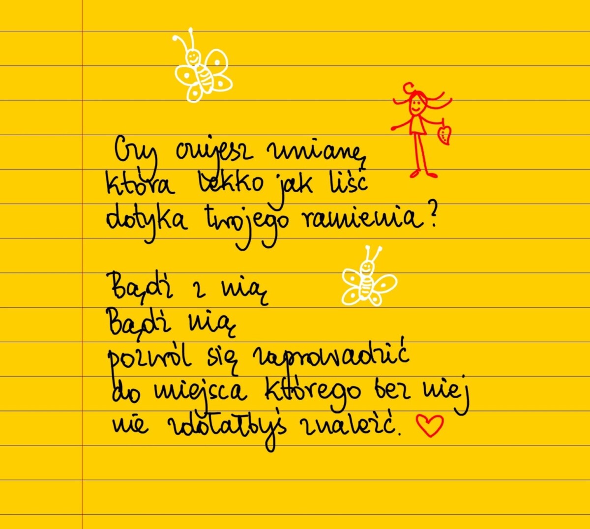 Czy czujesz zmianę,  która lekko jak liść dotyka twojego ramienia? Bądź z nią. Bądź nią. Pozwól się zaprowadzić do miejsca, którego bez niej nie zdołałbyś znaleźć.  #żółtakartka