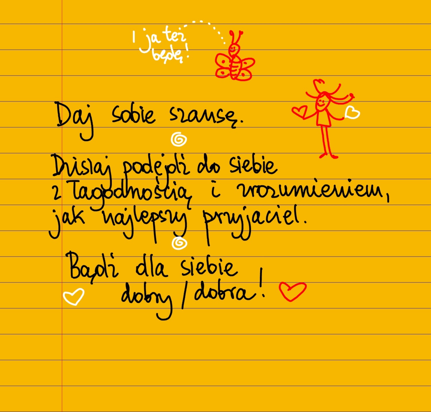 Żółte kartki Daj sobie szansę poniedziałek, 04.03.2024 Daj sobie szansę. Dzisiaj podejdź do siebie z łagodnością i zrozumieniem, jak najlepszy przyjaciel. Bądź dla siebie dobry/dobra ❤ #żółtakartka Udostępnij na Facebooku