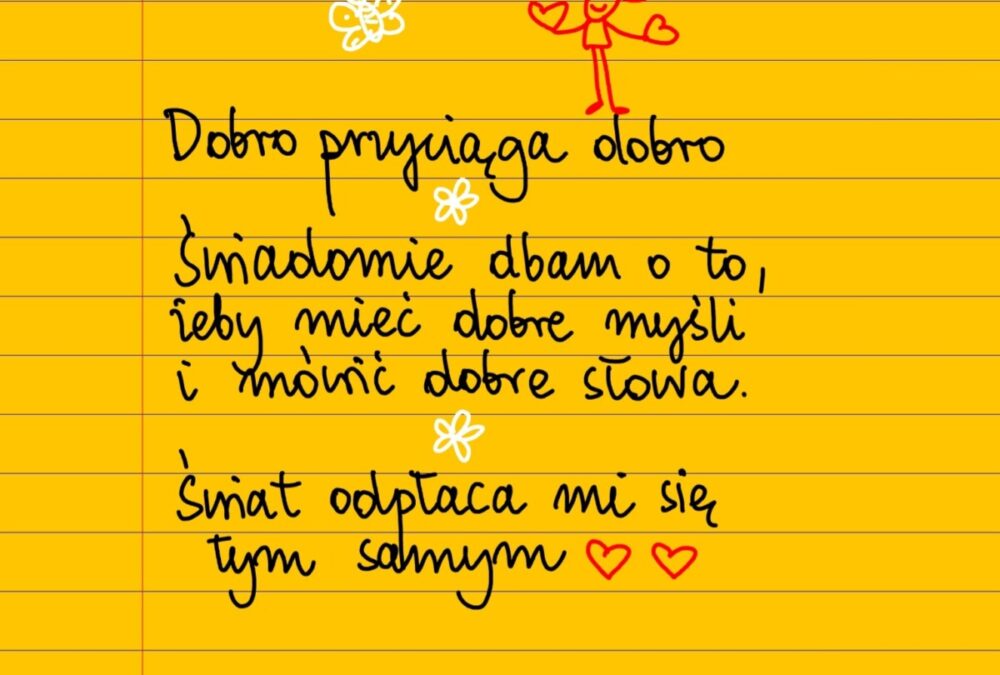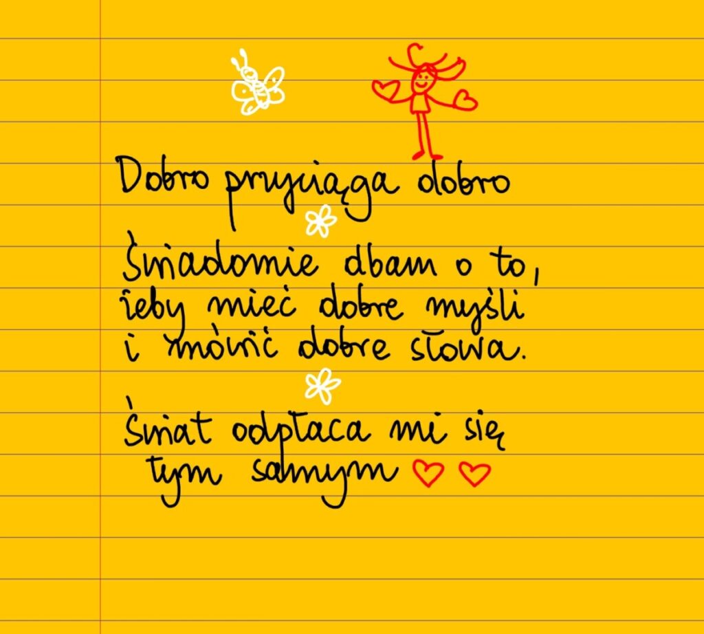 Żółte kartki Dobro przyciąga dobro czwartek, 15.05.2025 Dobro przyciąga dobro. Świadomie dbam o to, żeby mieć dobre myśli i mówić dobre słowa. Życie odpłaca mi się tym samym 😊 #żółtakartka Udostępnij na Facebooku