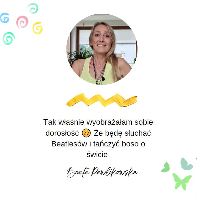Wstałam o czwartej rano, zawiozłam Danny’ego na lotnisko, włączyłam radio i usłyszałam Beatlesów. Wczoraj były urodziny Paula McCartneya. Radio gra Beatlesów. Śpiewałam razem z nimi przez całą drogę powrotną. Słońce dopiero wspinało się po niebie i dzisiaj wyglądało jak złocista kula zawieszona w żółtej pustyni. Dawno nie włączałam radia w kuchni, ale zrobiłam to jak tylko weszłam do domu. Paul McCartney śpiewał „Monkberry Moon Delight”, a ja zaczęłam tańczyć. Tak właśnie wyobrażałam sobie dorosłość 😊 Że będę słuchać Beatlesów i tańczyć boso o świcie czując każdy centymetr mojego ciała i karmiąc cudnymi dźwiękami duszę.