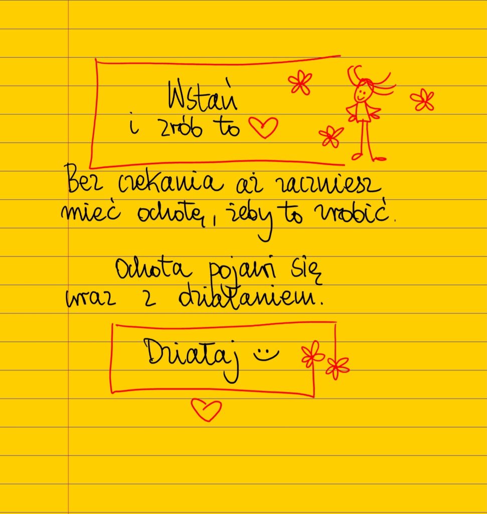 Wstań i zrób to ❤ Bez czekania aż zaczniesz mieć ochotę, żeby to zrobić. Ochota pojawi się wraz z działaniem. Działaj ❤ #żółtakartka