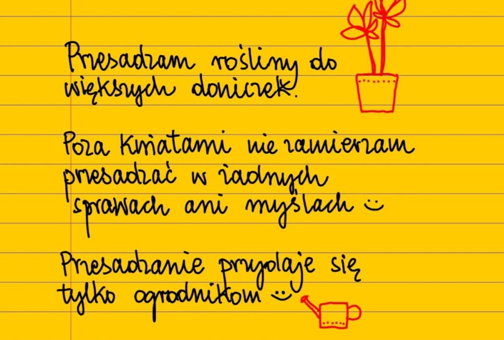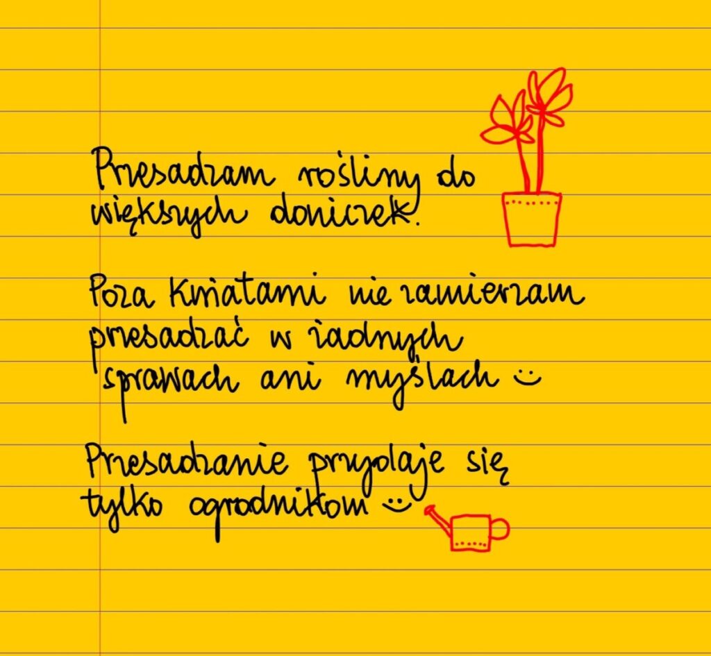 Żółte kartki Dzień bez przesadzania piątek, 08.04.2022 Przesadzam rośliny do większych doniczek. Poza kwiatami nie zamierzam przesadzać w niczym innym – w żadnych sprawach ani myślach 😊 Przesadzanie przydaje się tylko ogrodnikom 😊#żółtakartka Udostępnij na Facebooku