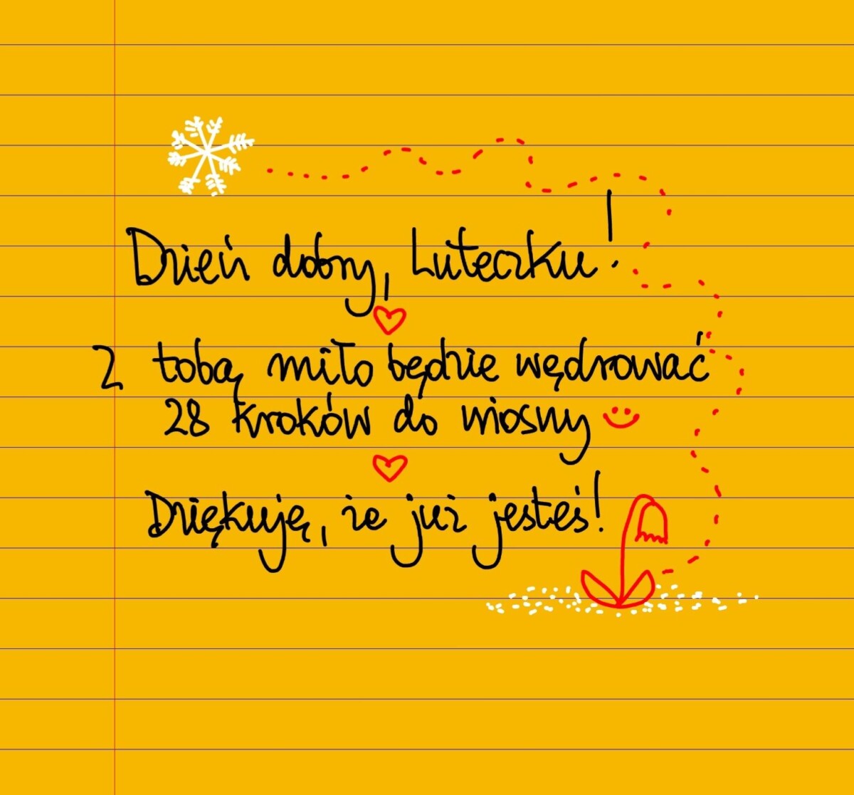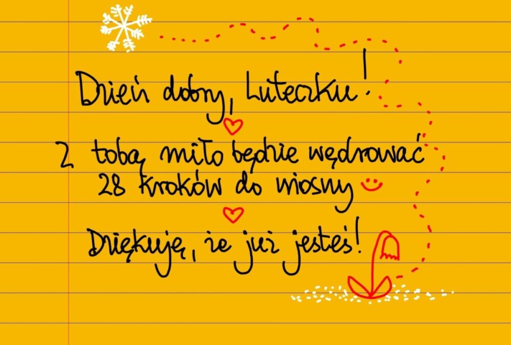 Żółte kartki Dzień dobry, Luteczku! środa, 01.02.2023 Dzień dobry, Luteczku! Z tobą miło będzie wędrować dwadzieścia osiem kroków do wiosny 😊 Dziękuję, że już z nami jesteś 😊 #żółtakartka Udostępnij na Facebooku