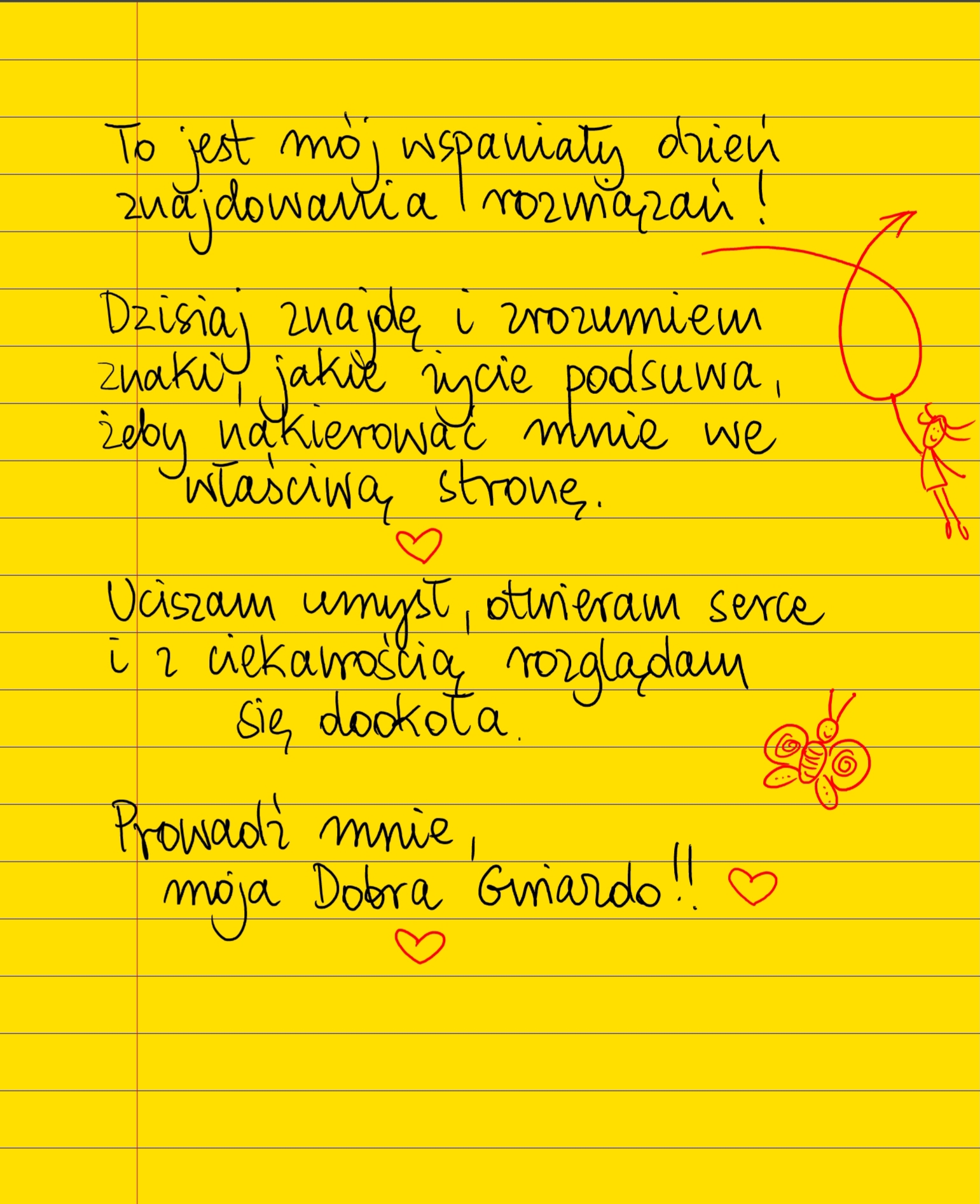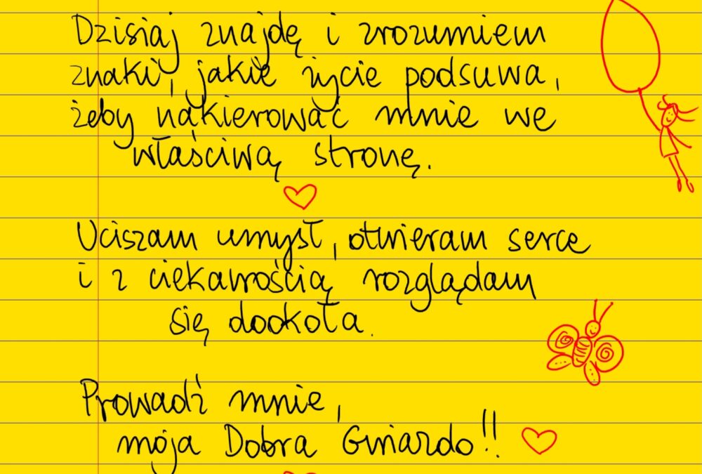 To jest mój wspaniały dzień znajdowania rozwiązań! Dzisiaj znajdę i zrozumiem znaki, jakie życie podsuwa, żeby nakierować mnie we właściwą stronę. Uciszam umysł, otwieram serce i z ciekawością rozglądam się dookoła. Prowadź mnie, moja Dobra Gwiazdo! #żółtakartka