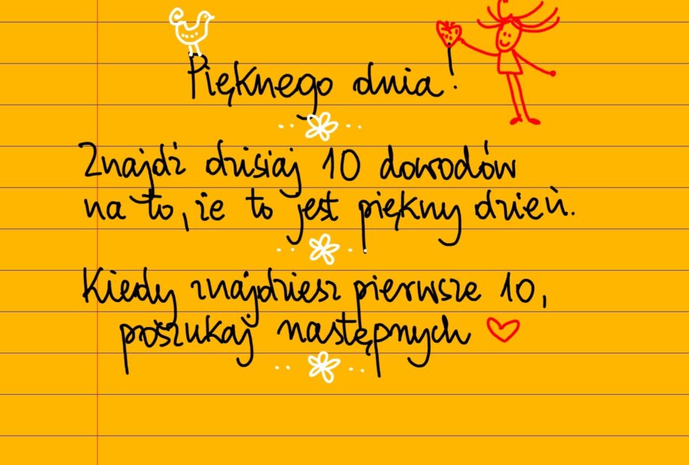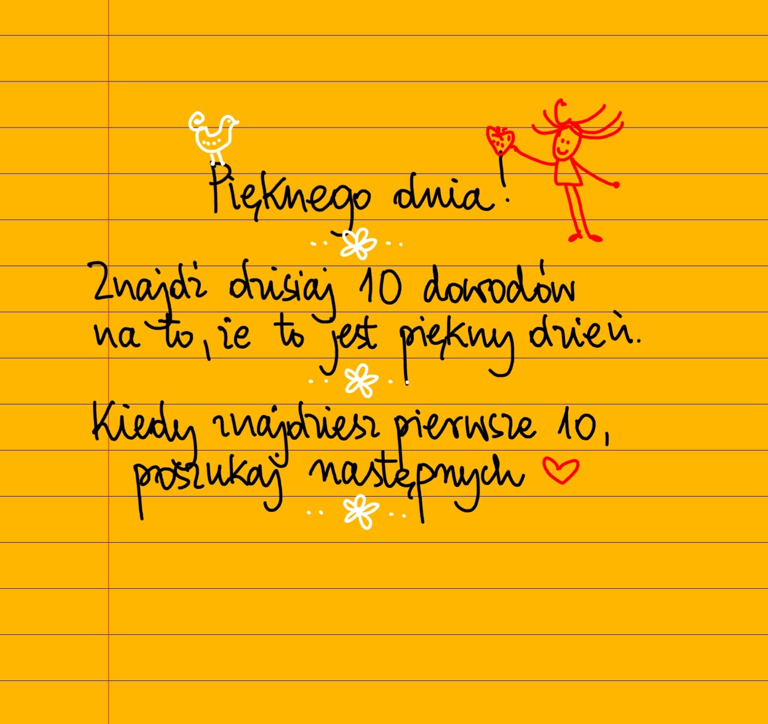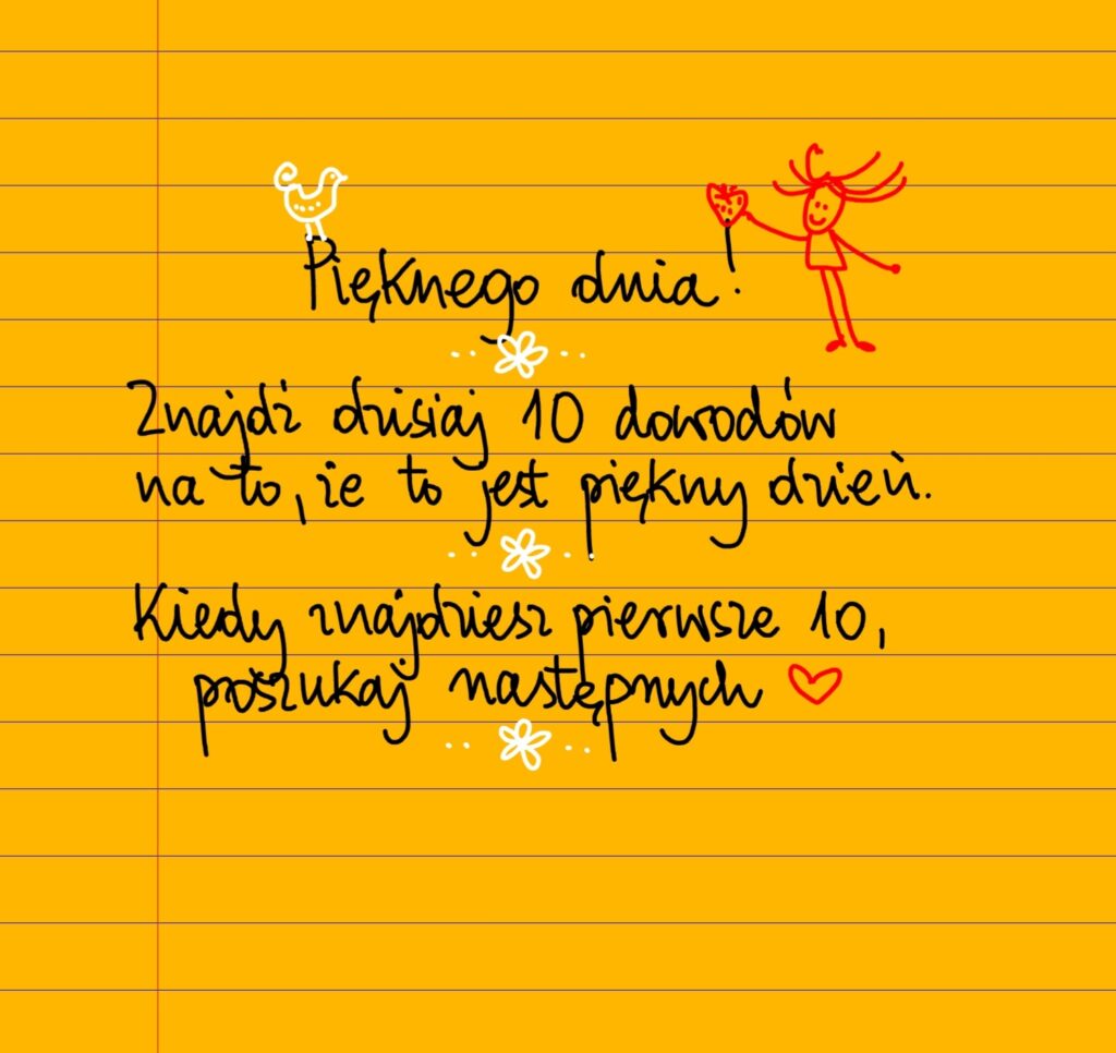 Bez kategorii Dziesięć dowodów wtorek, 11.02.2025 Pięknego dnia! Znajdź dzisiaj dziesięć dowodów na to, że to jest piękny dzień 😊 Kiedy znajdziesz pierwsze dziesięć, poszukaj następnych ❤ Udostępnij na Facebooku