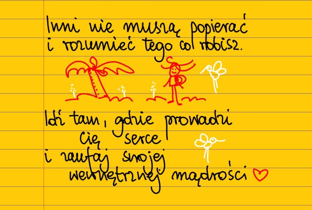Inni nie muszą popierać i rozumieć tego co robisz. Idź tam, gdzie prowadzi Cię serce i zaufaj swojej wewnętrznej mądrości ❤ #żółtakartka