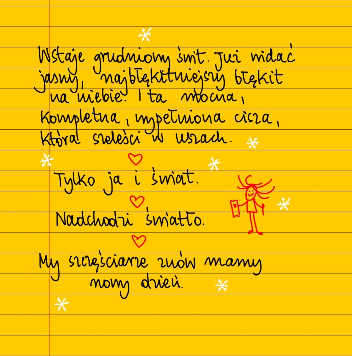 Wstaje grudniowy świt. Już widać jasny, najbłękitniejszy błękit na niebie. I ta mocna, kompletna, wypełniona cisza, która szeleści w uszach, Tylko ja i świat. Nadchodzi światło. My szczęściarze znów mamy nowy dzień. #żółtakartka