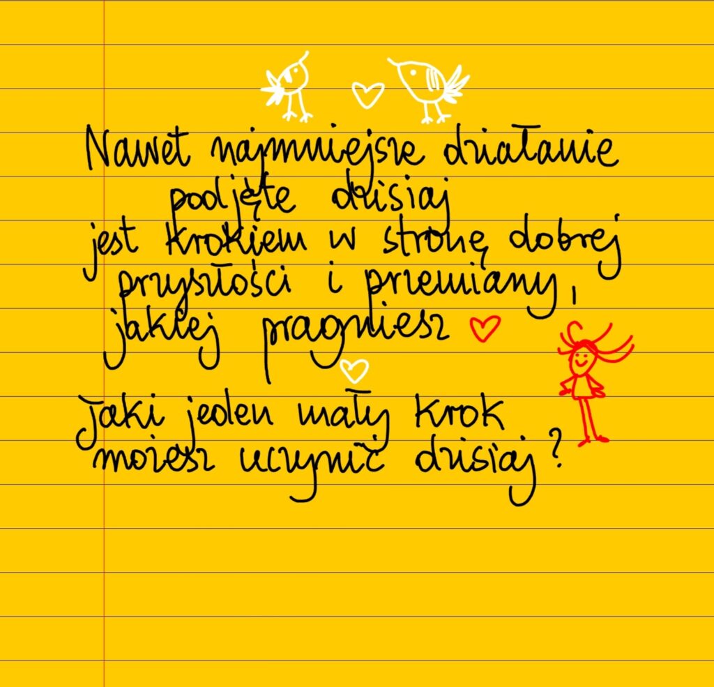 Nawet najmniejsze działanie podjęte dzisiaj jest krokiem w stronę dobrej przyszłości i przemiany, której pragniesz. Jaki jeden mały krok możesz uczynić dzisiaj? ❤