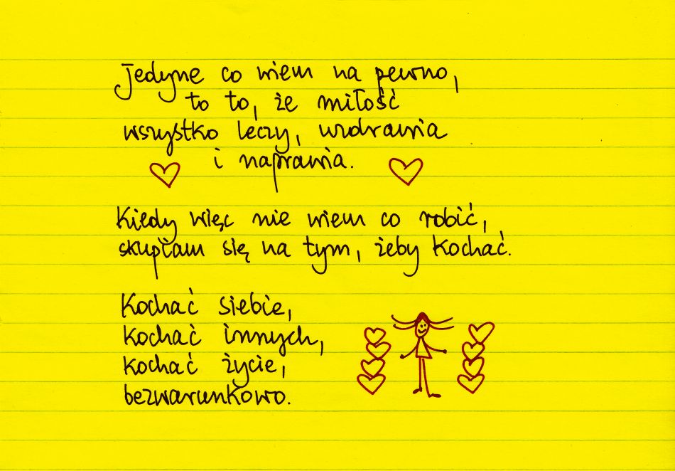 Jedyne, co wiem na pewno, to to, że miłość wszystko leczy, uzdrawia i naprawia. Kiedy więc nie wiem co robić, skupiam się na tym, żeby kochać. Kochać siebie, kochac innych, kochać życie, bezwarunkowo ❤