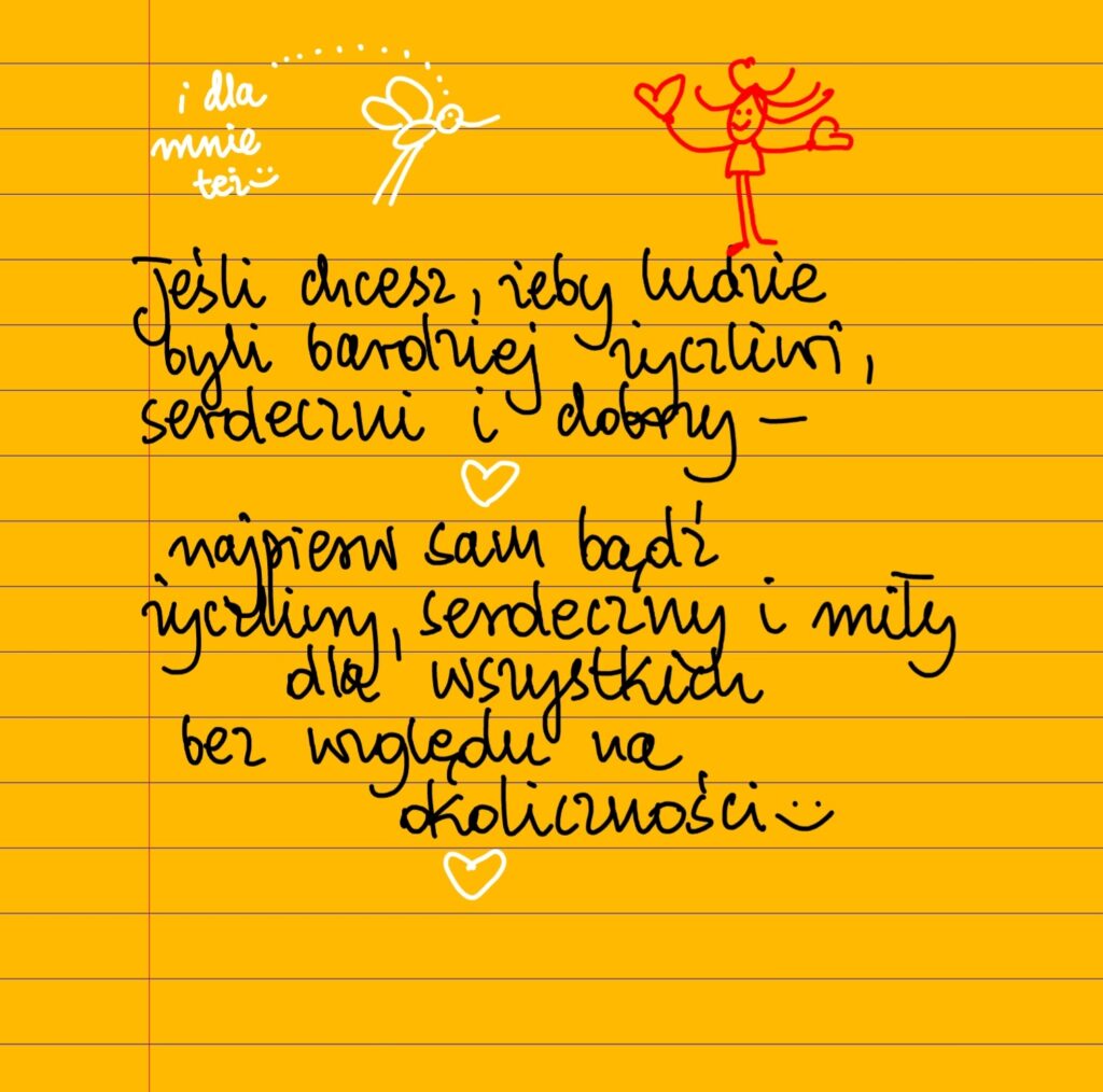 Jeśli chcesz, żeby ludzie byli bardziej życzliwi, serdeczni i dobrzy, sam najpierw bądź życzliwy, dobry i miły dla wszystkich bez względu na okoliczności ❤ #żółtakartka