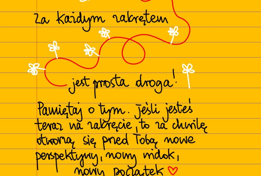 Za każdym zakrętem jest prosta droga. Pamiętaj o tym. Jeśli jesteś teraz na zakręcie, to za chwilę otworzą się przed tobą nowe perspektywy, nowy widok, nowy początek ❤