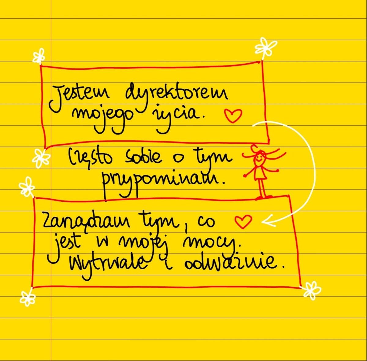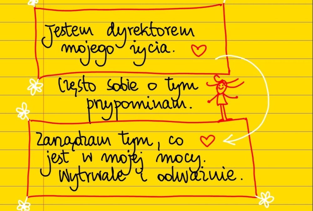 Żółte kartki Jestem dyrektorem mojego życia czwartek, 07.07.2022 Jestem dyrektorem mojego życia. Często sobie o tym przypominam. Zarządzam tym, co jest w mojej mocy. Wytrwale i odważnie. #żółtakartka Udostępnij na Facebooku