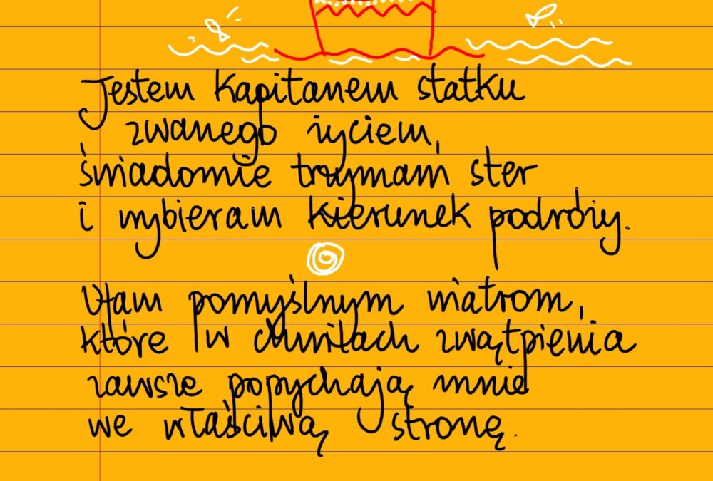 Jestem kapitanem statku zwanego życiem, świadomie trzymam ster i wybieram kierunek podróży. Ufam pomyślnym wiatrom, które w chwilach zwątpienia zawsze popychają mnie we właściwą stronę ❤