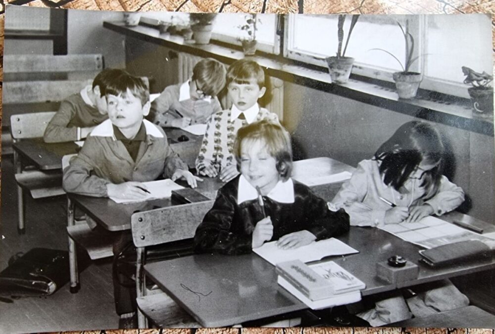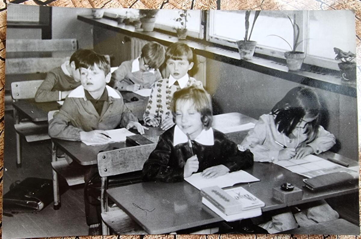 Od kilku dni zastanawiam się czy dobrze pamiętam, że początku szkoły podstawowej pisaliśmy stalówkami w oprawkach, a na szkolnych ławkach stały kałamarze z atramentem. Zadzwoniłam nawet do mojej mamy, ale nie mogła sobie przypomnieć czy to prawda. I nagle znalazłam to zdjęcie 😊 Na ławce stoi kałamarz z atramentem! Więc tak! Na początku szkoły podstawowej miałam tornister, drewniany piórnik, a w nim obsadkę ze stalówką. Stalówkę maczało się w kałamarzu stojącym na ławce i tak uczyliśmy się pisać literki 😊