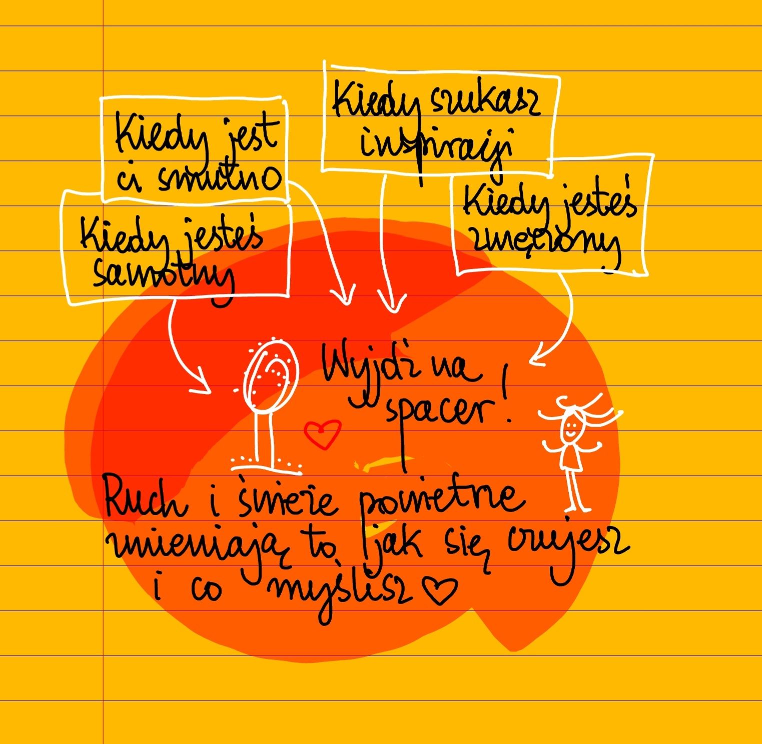 Kiedy jest ci smutno, pójdź na spacer. Kiedy szukasz inspiracji, pójdź na spacer. Kiedy jesteś zmęczony, pójdź na spacer. Kiedy czujesz się samotny, pójdź na spacer. Ruch i świeże powietrze natychmiast zmieniają to jak się czujesz i co myślisz. #żółtakartka