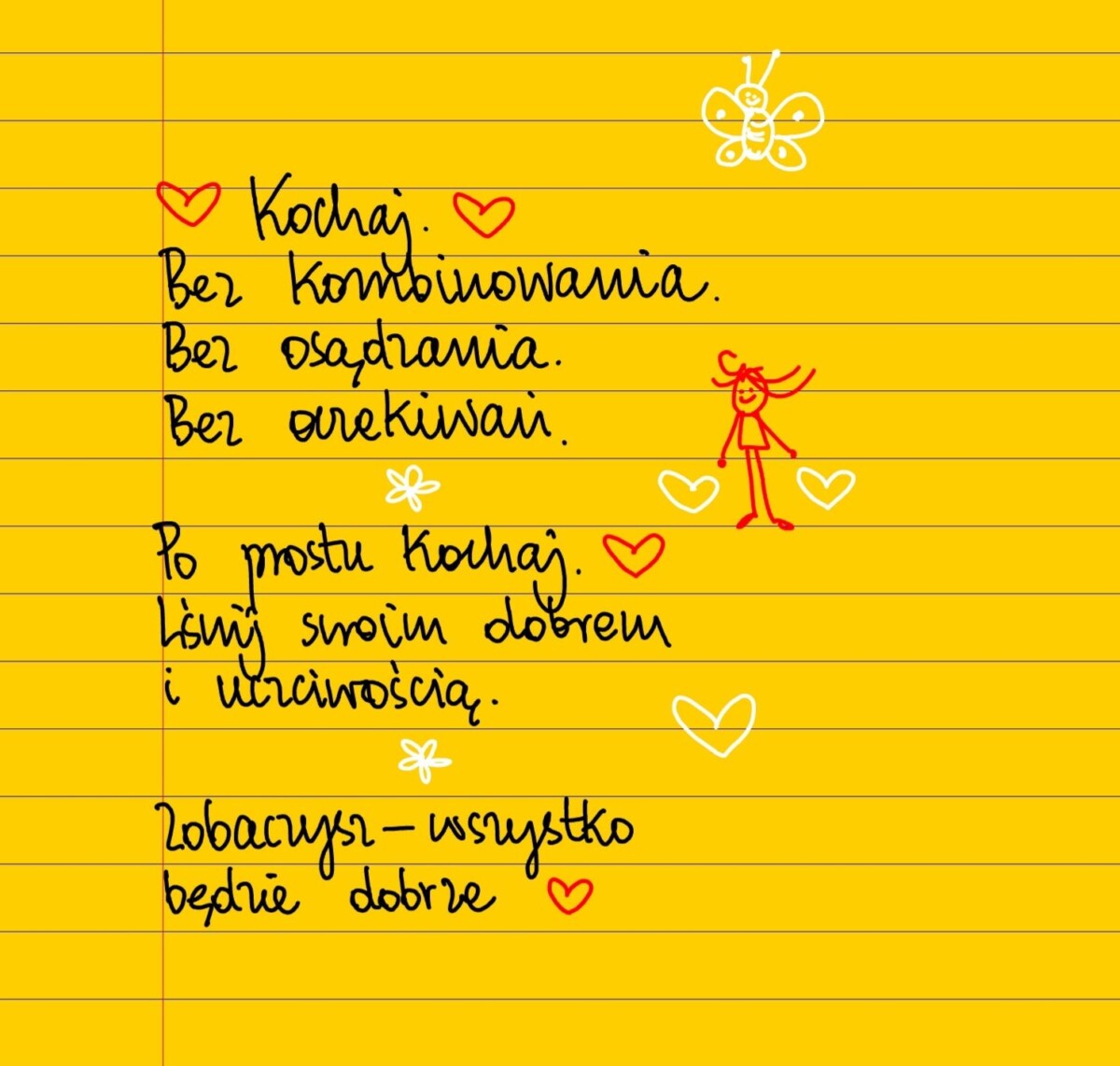 Kochaj ❤ Bez kombinowania. Bez osądzania. Bez oczekiwań. Po prostu kochaj. Lśnij swoim dobrem i uczciwością. Zobaczysz – wszystko będzie dobrze ❤ #żółtakartka