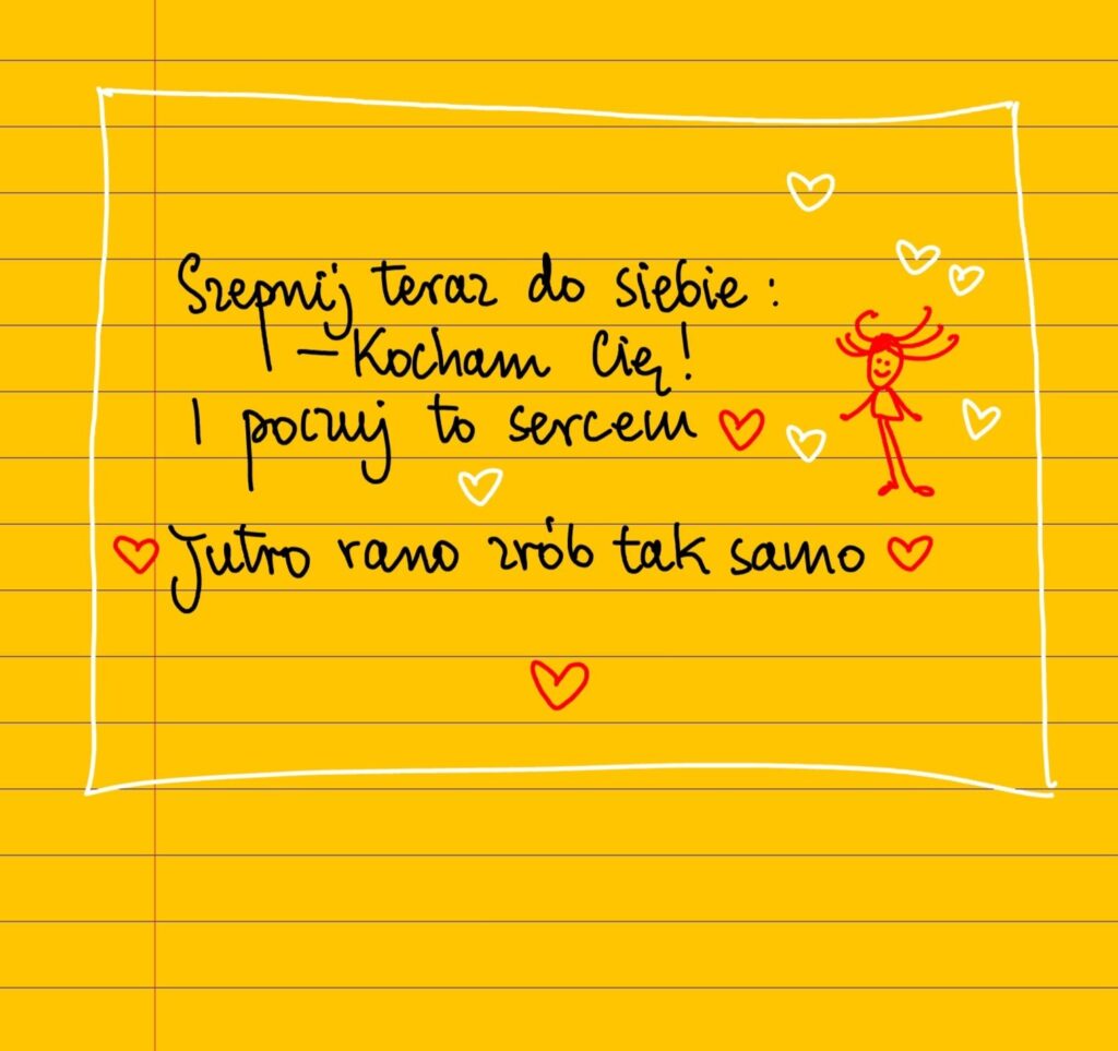 Żółte kartki Kocham cię środa, 30.07.2025 Szepnij teraz do siebie „Kocham cię” i poczuj to sercem ❤ Jutro rano zrób tak samo ❤ Udostępnij na Facebooku