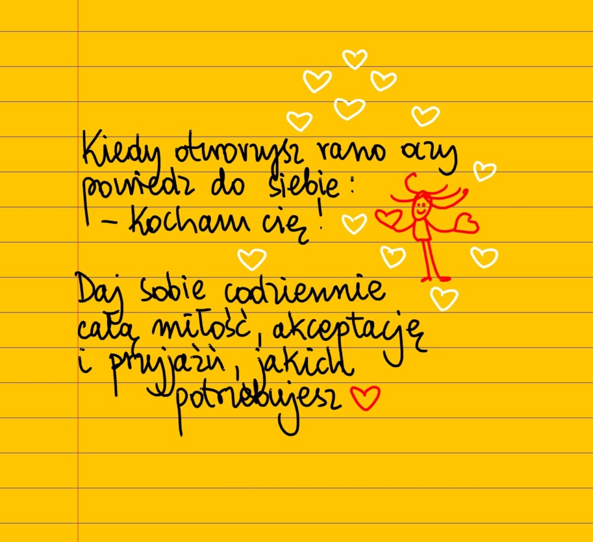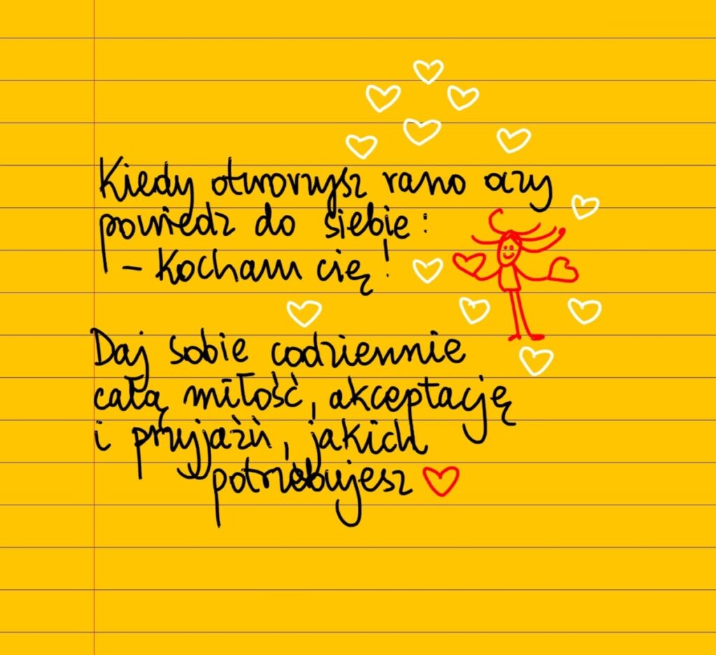 Kiedy rano otworzysz oczy, powiedz do siebie: – Kocham cię! Daj sobie codziennie całą miłość, akceptację i przyjaźń, jakich potrzebujesz ❤ #żółtakartka