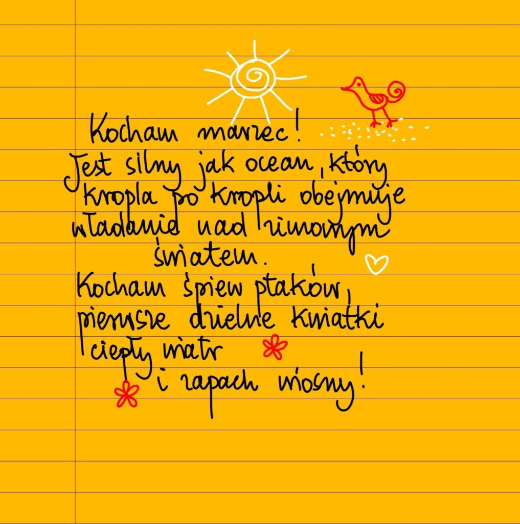 Kocham marzec! Jest silny jak ocean, który kropla po kropli obejmuje wiosenne władanie nad zimowym światem. Kocham śpiew ptaków, pierwsze dzielne kwiatki, ciepły wiatr i zapach zmiany!